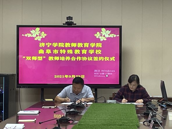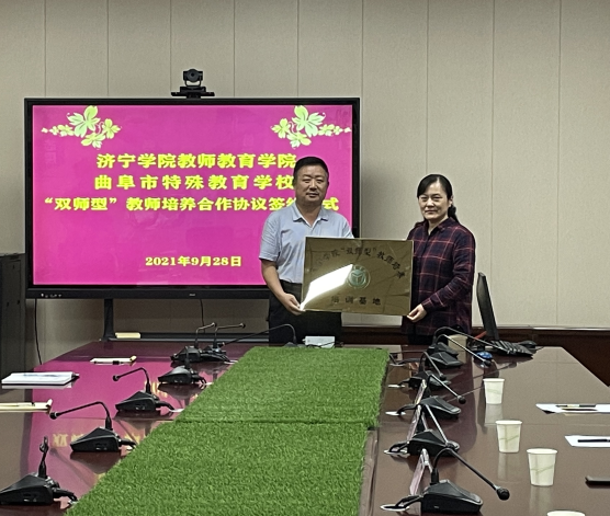 9月28日,教师教育学院“双师型”教师培养培训基地合作签约授牌仪式在曲阜市特殊教育学校举行。教师教育学院党委书记乔东华、院长李群,曲阜市特殊教育学校校长董福会出席,双方相关人员参加了签约授牌仪式。