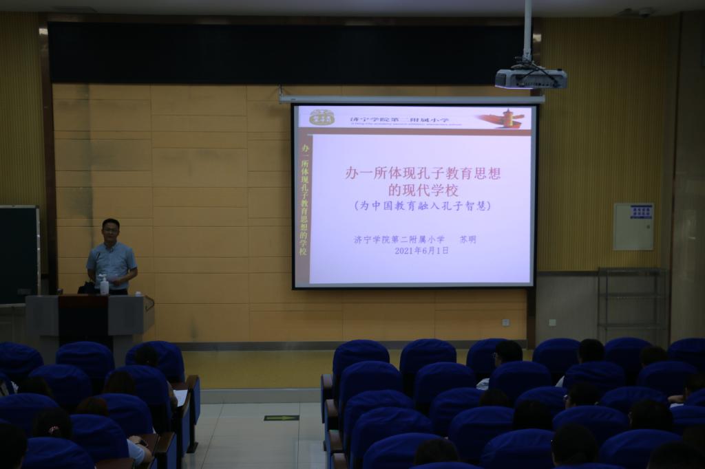 6月1日下午,教师教育学院邀请济宁学院第二附属小学副校长苏明,在二号楼B101作了一场以“办一所体现孔子教育思想的现代学校(为中国教育融入孔子智慧)”为主题的专题讲座。讲座由教师教育学院副院长曹光海主持,教育学教研室部分教师和小学教育专业百余名同学参加。
