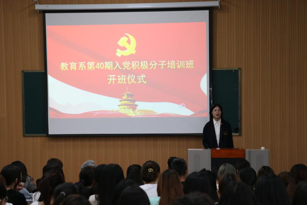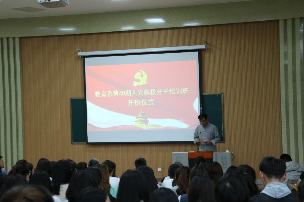2021年5月6日下午,教育系第四十期入党积极分子培训班开班仪式在4号楼B101举行。教育系党总支书记乔东华、党总支副书记刘勇、各年级辅导员出席开班仪式。