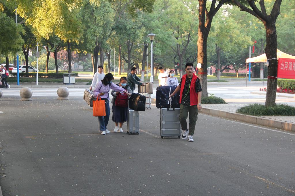 今年的新生入学是在疫情防控要求下开展的一次非常特殊的迎新工作,新生家长无法进入校园陪同办理入学手续,为了让家长们放心孩子入学,我系设立了新生引导处,并为每位新生提供了至少两位志愿者,带领新生完成开学报到的各项步骤,我校还安排了多辆大巴车,帮助新生托运行李。志愿者们往来穿梭,引领师弟师妹办理入学手续,”一对一”的一站式服务和“零等待”的安排让新生感到非常温暖。别出心裁的“留念墙”吸引了众多新生拍照留念,将入学报到这一珍贵瞬间记录下来。这些细心、耐心的服务让新同学很快适应大学新环境,消除了对新学校的紧张和不安。