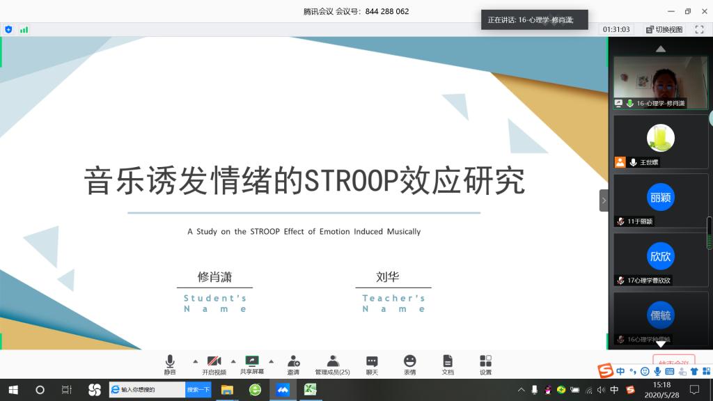 按照各小组安排的答辩顺序,每位答辩学生依次采用分享屏幕的方式演示精心准备的答辩PPT,陈述自己的研究方法、研究实施过程、研究结果等,答辩小组老师在认真审阅论文和听取学生陈述的基础上,就论文结构、研究内容及学术规范等方面对学生进行提问、点评,答辩学生对答辩小组提出的问题进行认真回答,整个线上答辩过程安排合理、组织有序。在大家的积极配合和共同努力下,2020毕业生论文答辩工作顺利完成。