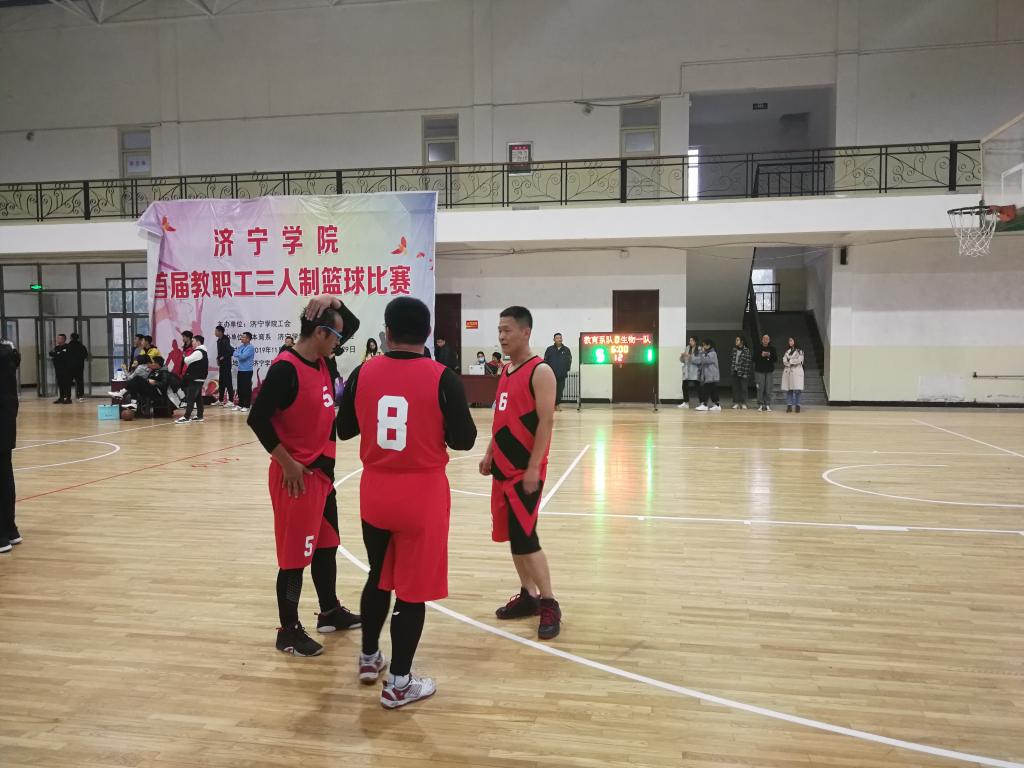 在济宁学院首届教职工三人制篮球赛小组赛中,我系以四连胜的战绩获得小组头名出线。