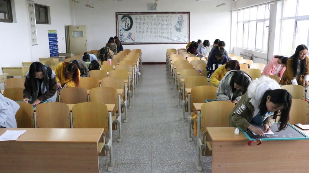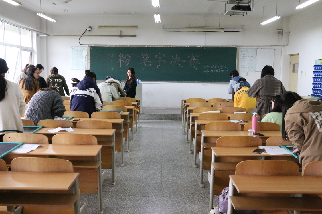为强化在校师范生认真练习粉笔字的意识,切实提高在校师范生的板书技能水平,10月17日下午4时,由教育系团总支主办,教师教育研究会承办的粉笔字决赛在教育系A504成功举办。18届教育系社团管理中心主任姜慧玲和外国语系宣传部副部长杨朝晖担任本次比赛的评委,教育系40余名学生参加此次活动。