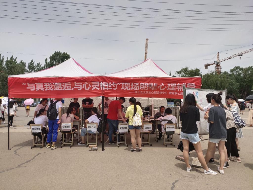 5月23日至24日,由学工处心理咨询中心主办,教育系心理协会承办的“与真我邂逅,与心灵相约”为主题的朋辈现场心理辅导活动在北门举行,共计有上百人参加。