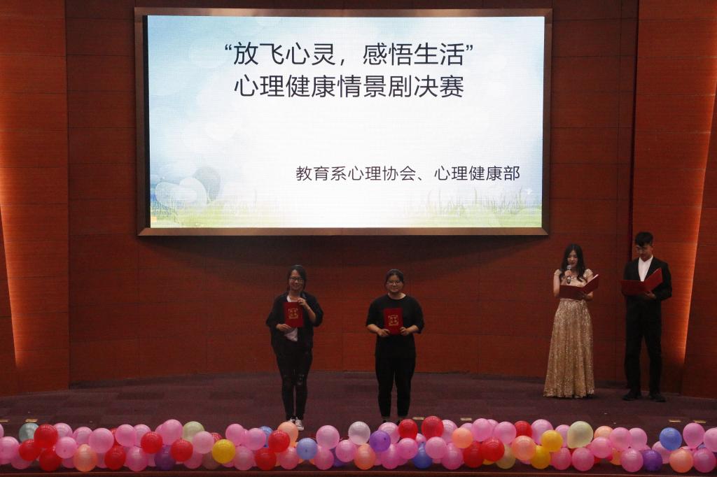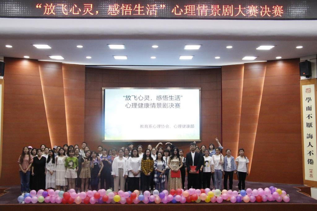 2019年5月10日,教育系“放飞心灵,感悟生活”心理情景剧大赛决赛在理科楼报告厅举行。教育系团总支书记杜鹃,心理学老师王世嫘、王秀丽以及学生代表担任比赛评委。
