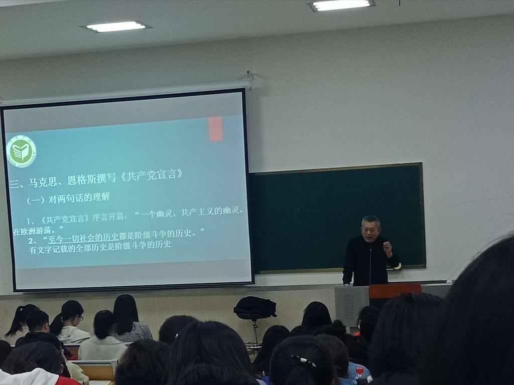 开班仪式结束后,马克思主义学院党总支书记樊海涛为学员上了第一堂党课:《与青年朋友谈信仰》。他通过对马克思的家庭背景、生平事迹的介绍和对《共产党宣言》的解读,使同学们明白了马克思主义的基本原理,坚定了同学们的共产主义理想,坚定了中国特色社会主义道路自信、理论自信、制度自信和文化自信,进一步端正了入党动机。