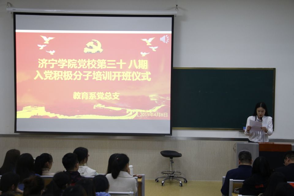 2019年4月9日,教育系第三十八期入党积极分子培训开班仪式于文科楼B202举行。教育系党总支书记乔东华,党总支副书记刘勇,学生党支部书记杜鹃,辅导员徐艳艳、田翠出席了开班仪式,206名学员参加。