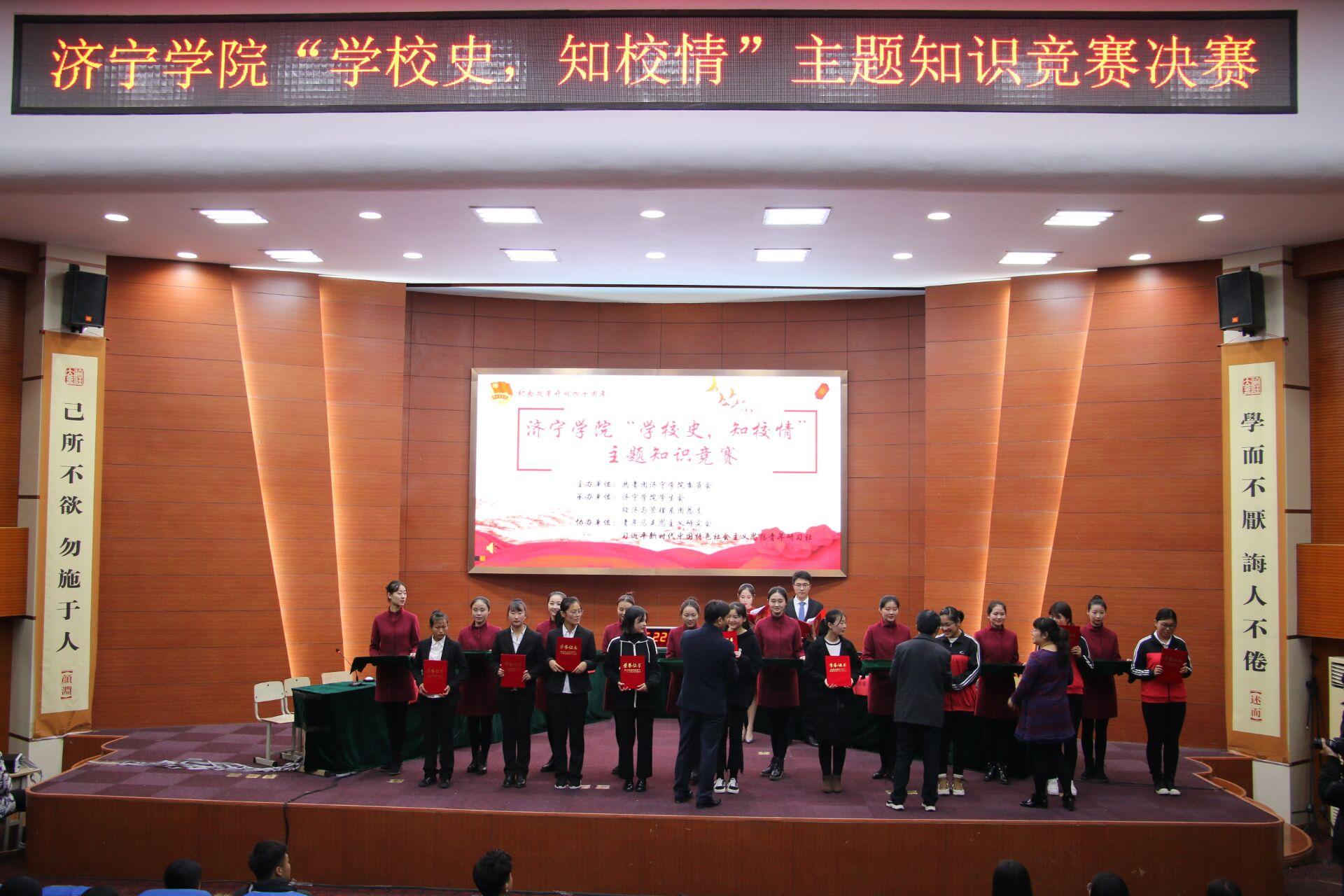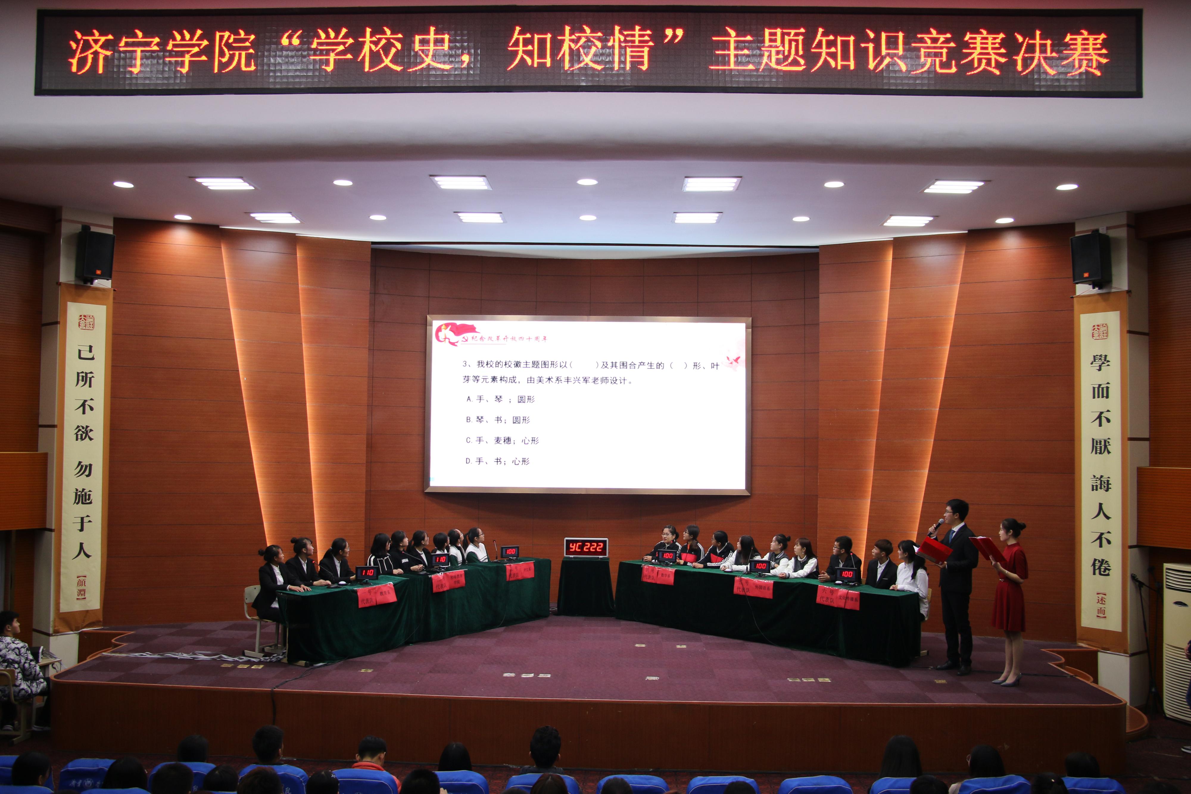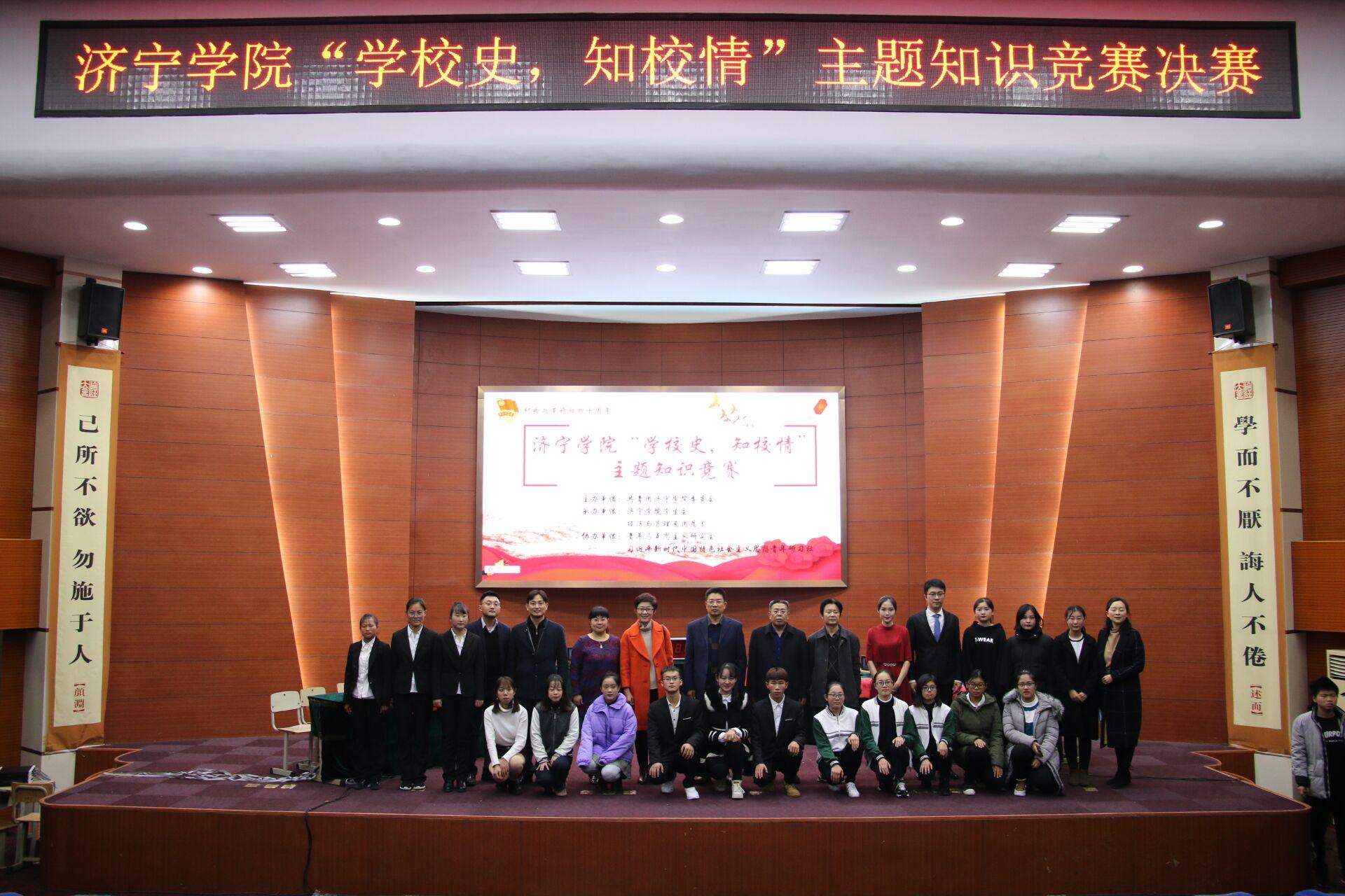 为让广大济院学子了解我校艰苦奋斗的历史历程,校团委特开展“学校史、知校情”系列主题活动之知识竞赛活动。由丁雪、邓嘉璇、田佳宁三名同学组成的新叶代表队代表教育系参加此次竞赛。三位同学以团体总分第一名的成绩进入决赛。决赛阶段,经过六支队伍的激烈角逐,教育系最终夺得了季军。