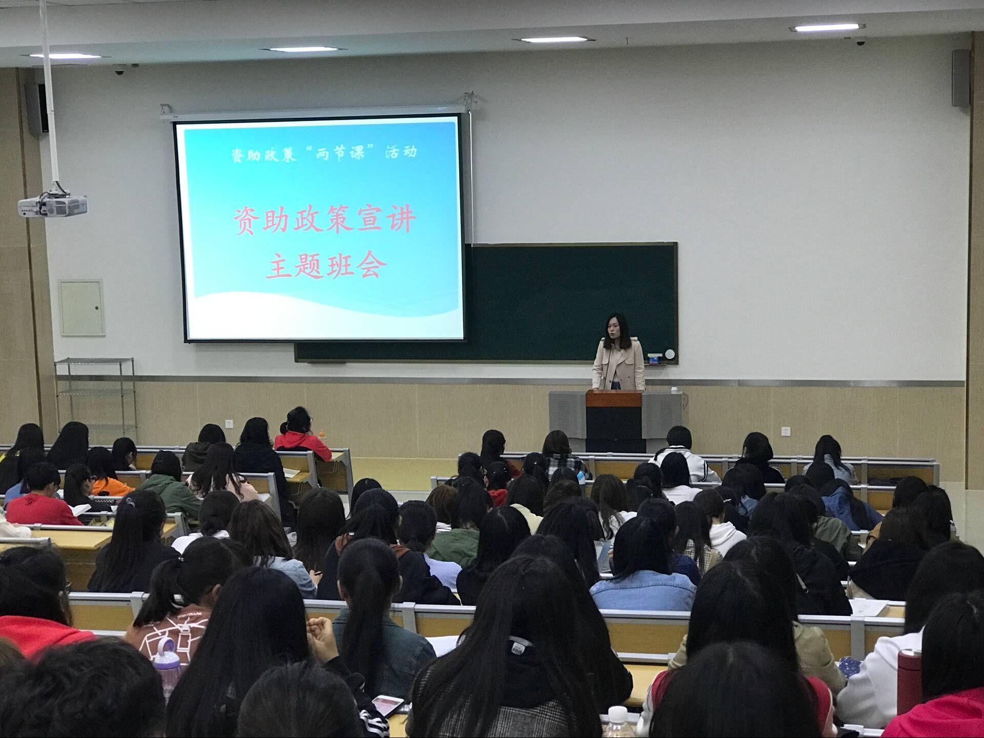 2018年4月9日,“资助政策宣讲”主题班会在2号楼B102成功召开。本次大会由徐艳艳老师主持,2017级同学们认真学习了本次宣讲会内容。