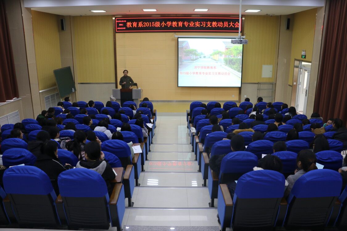 动员会上李群从大学生支教的社会现实意义和自我成长方面向支教的同学们提出了三点要求:一是要从业务能力上做好充分准备,以一个准教师的身份去提升教育教学水平,为支教学校学生发展贡献力量;二是要有吃苦的思想准备,尽快接纳和适应支教学校的环境、尽快适应支教工作,在支教期间要有纪律观念和责任意识,以高尚的师德树立济宁学院和教育系的支教品牌;三是要不留遗憾的充分利用短暂的支教时间磨炼和提升自我,不怕吃苦,用青年人的热心和爱心来关爱学生,尤其是留守儿童等需要特殊关注的学生。张邦伟从济宁学院实习支教整体情况、教育系实习支教基本情况、实习支教任务、实习支教管理、实习支教中的常见问题以及在近4个月的实习支教中如何不忘初心、调整心态、善始善终六个方面做了做重点强调和具体安排。本着“安全第一”的原则要求,孔凡华对支教过程中同学们可能遇到的安全问题尤其是女生的安全问题进行了重点强调。最后徐艳艳对本次会议的要点和注意事项又进行了全面总结。