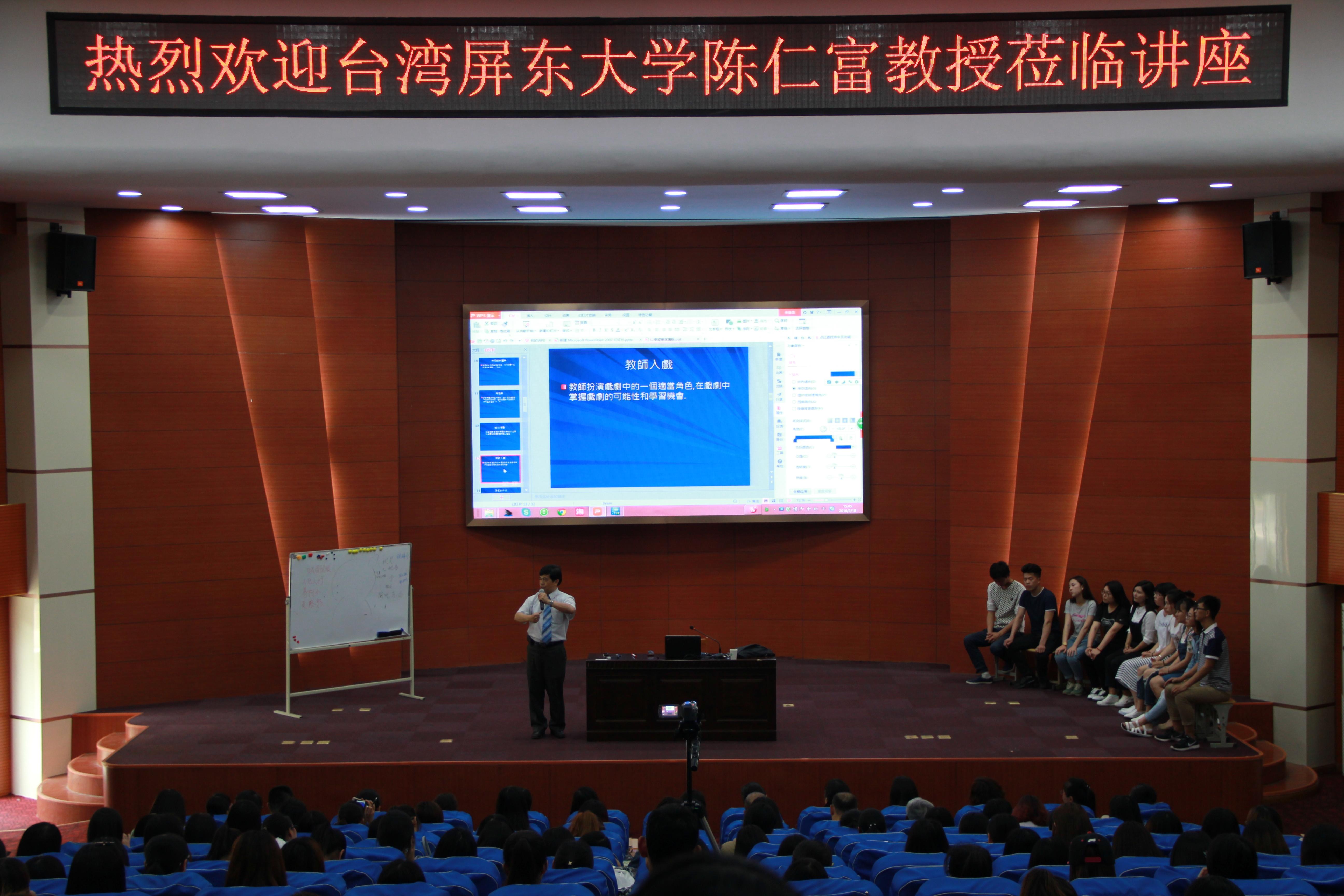 陈仁富教授以幽默风趣的方式介绍了戏剧策略的基本原理后,以师生共同参与的形式生动形象地展示了戏剧策略在教学上的应用。陈仁富教授的报告将理论与实践相结合,开阔了与会师生的视野并引起大家浓厚的兴趣。报告持续两个多小时,同学们掌声不断,陈仁富教授讲座过程中的敬业精神感染了在座的师生,获得了广大师生的高度赞誉。会后,陈仁富教授与教育系师生进行了深入的讨论交流,分享了各自的办学经验,回答了教育系即将赴台交流学生的问题。