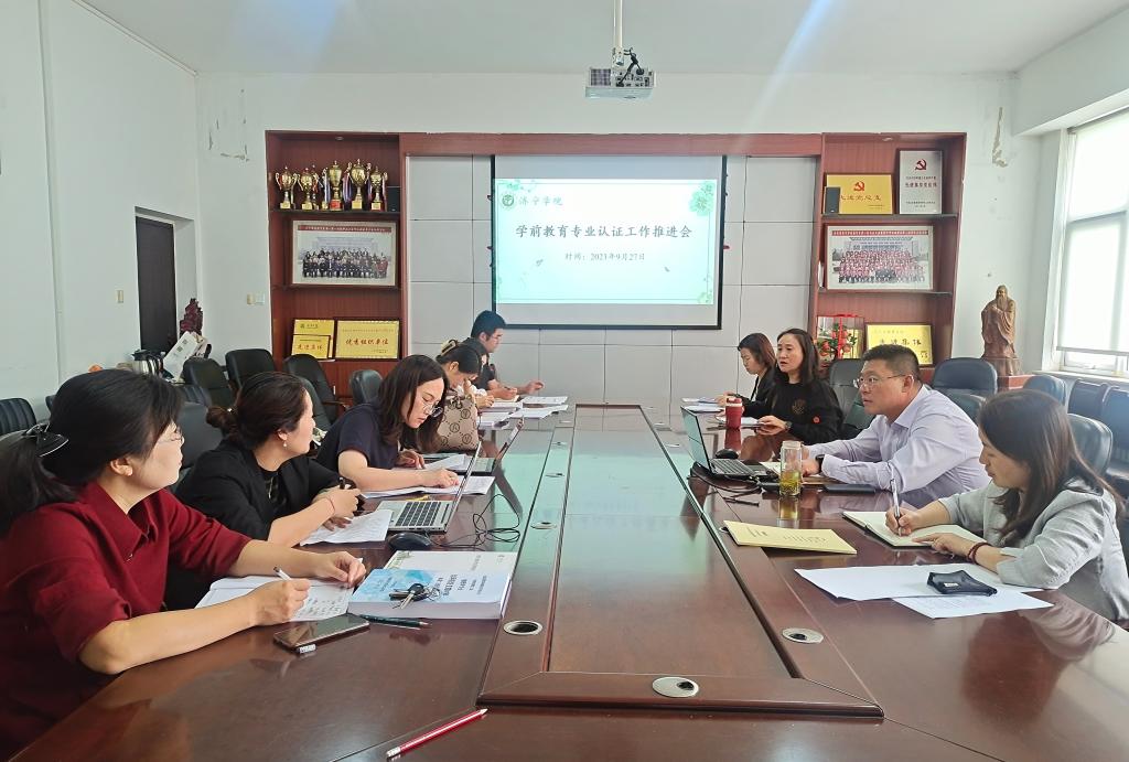 9月27日上午,学前教育专业认证工作推进会在教师教育学院会议室举行。学前教育专业负责人及认证团队核心成员分别汇报了目前各自负责的工作进展情况及存在的问题。刘勇从整体上进行了安排,指出了问题解决的方向和思路,再次强调了做好师范类专业认证工作对于该院发展的重要意义,贾英侠就自评报告格式规范、支撑材料准备等细节问题进行了进一步的工作部署。参会人员纷纷表示要按照学院的统一部署和要求,全面落实各项任务,团结协作,全力以赴,精益求精,高标准高质量完成学前教育专业认证工作。
