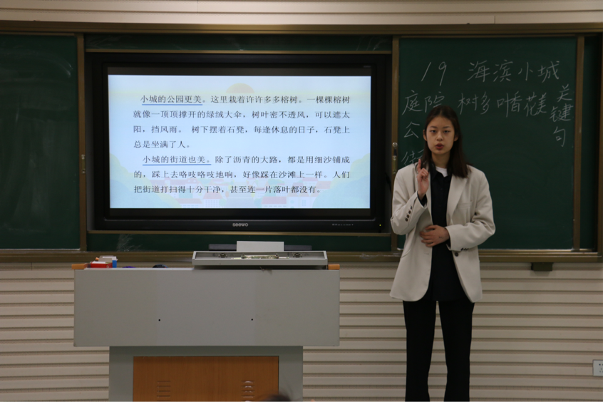 比赛分初赛和决赛两个环节。小学教育专业和学前教育两个专业共322名本科学生261名专科学生参加了初赛,最后共61名学生进入决赛,比赛分小学语文组、小学数学组、学前组三个学科组分别进行。416日,决赛在2号楼微格教室C302--304举行,各小组专业老师担任比赛评委。比赛中,各位选手紧扣课程标准设计教学活动,借助多媒体教学课件和自制教具,运用多种教学方法和组织形式模拟上课情景,教学思路清晰,教学活动丰富,教学语言生动,充分展示我系师范生扎实的专业基础和良好的精神风貌。经过评审,王慧迪、郑泽、张文悦等同学获得一等奖,杨玉凡、高文雪、王小文等同学获得二等奖,张琛、冯馨月、刘梦凡等同学获得三等奖。