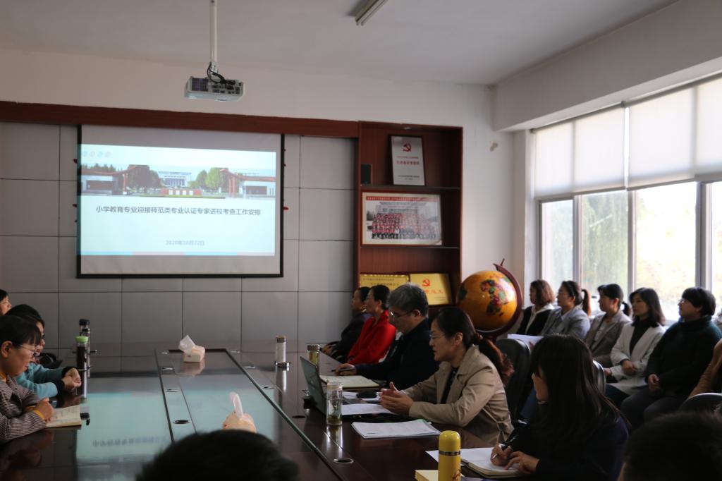为迎接教育部师范类专业认证专家进校对小学教育专业进行二级认证考查,2020年10月22日下午,教育系在会议室召开了认证专家进校考查动员会,教育系主任李群、党总支书记乔东华及教育系全体教师参会,会议由教育系副主任贾英侠主持。