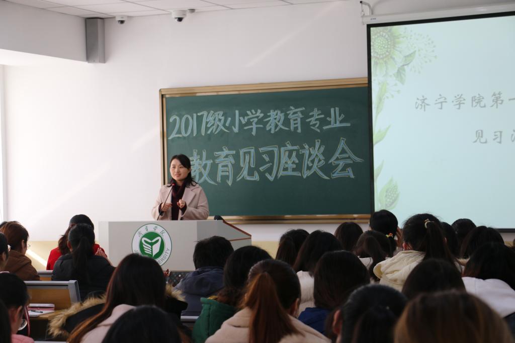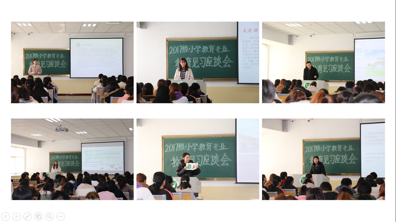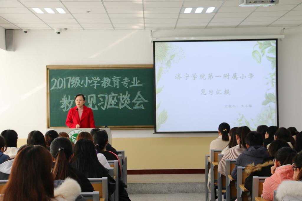 然后,2017级小学教育专业的王小梅、张至贤、李鹏飞、张景浩、王璐瑶、赵银桂作为代表对济宁学院附属小学第二附属小学、曲阜春秋小学三所小学6个小组的教育见习情况进行了汇报交流,内容主要包括在小学的听课、评课、协助老师批改作业、参与班级管理与班级文化建设等工作情况以及教育见习期间的收获和心得体会。