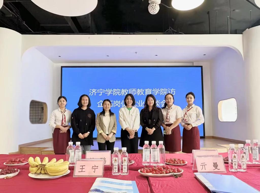 5月11日上午,教师教育学院党委副书记杜鹃、副院长贾英侠、学前教育技能教研室主任杨柳一行赴济宁高新区蓼河新城幼儿园开展“访企拓岗促就业”考察调研。慧灵顿幼教集团董事长亓曼、蓼河新城幼儿园园长王宁、冠亚园园长董甜丽、曼哈顿园园长徐慧敏参加活动。
