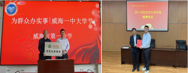 此次活动,我校代表教师与威海市第一中学、威海市第二中学、威海市实验高级中学的校方代表积极交流,反馈了近三年来该校毕业生在济宁学院的录取情况,并代表我校同这三所学校签订了济宁学院优质生源基地合作协议。
