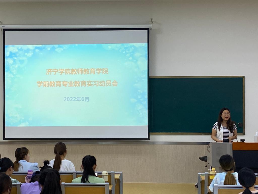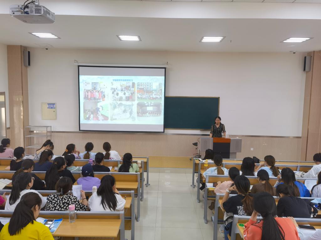 6月17日上午,教师教育学院在2号楼B202召开2020级学前教育(校企合作)专业教育实习动员会议。教师教育学院副院长单清清、学前教育技能教研室主任杨柳、辅导员刘璐及2020级学前教育(校企合作)专业143名同学参加本次动员会。