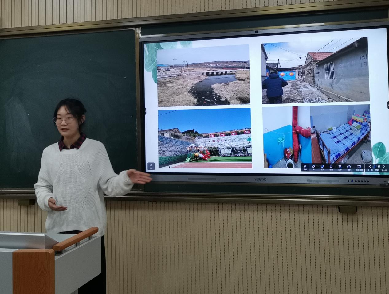 走进大山,与孩子一起描绘星空。山里冬日寒冷,夏日炎热,生活用水短缺,宿舍环境封闭潮湿,条件非常简陋,而孩子们微笑时的眼眸却更让我学会了仰望星空,畅想未来。每当我惭愧自己的绘画技能不够出彩,不能描绘幼儿园土墙上的图案,孩子们却当做一片天地尽情挥洒,不知不觉勾画出多彩的童年。我想是孩子们创造了我实习生活的天地,我们互相给予爱,互相见证了成长。我也深刻理解了作为幼儿教师应该用真诚细腻的爱,帮助关怀每一个孩子,因为他们都是创造星星的天使,都值得期待! ——张杨 (指导教师:杨柳)