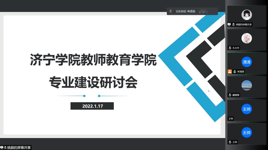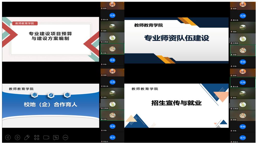 1月17日,教师教育学院通过腾讯会议召开了专业建设研讨会。教师教育学院院长李群、党委书记乔东华、副院长曹光海和单清清、教研室主任、专业负责人及教师代表参加了本次会议。研讨会由单清清主持。
