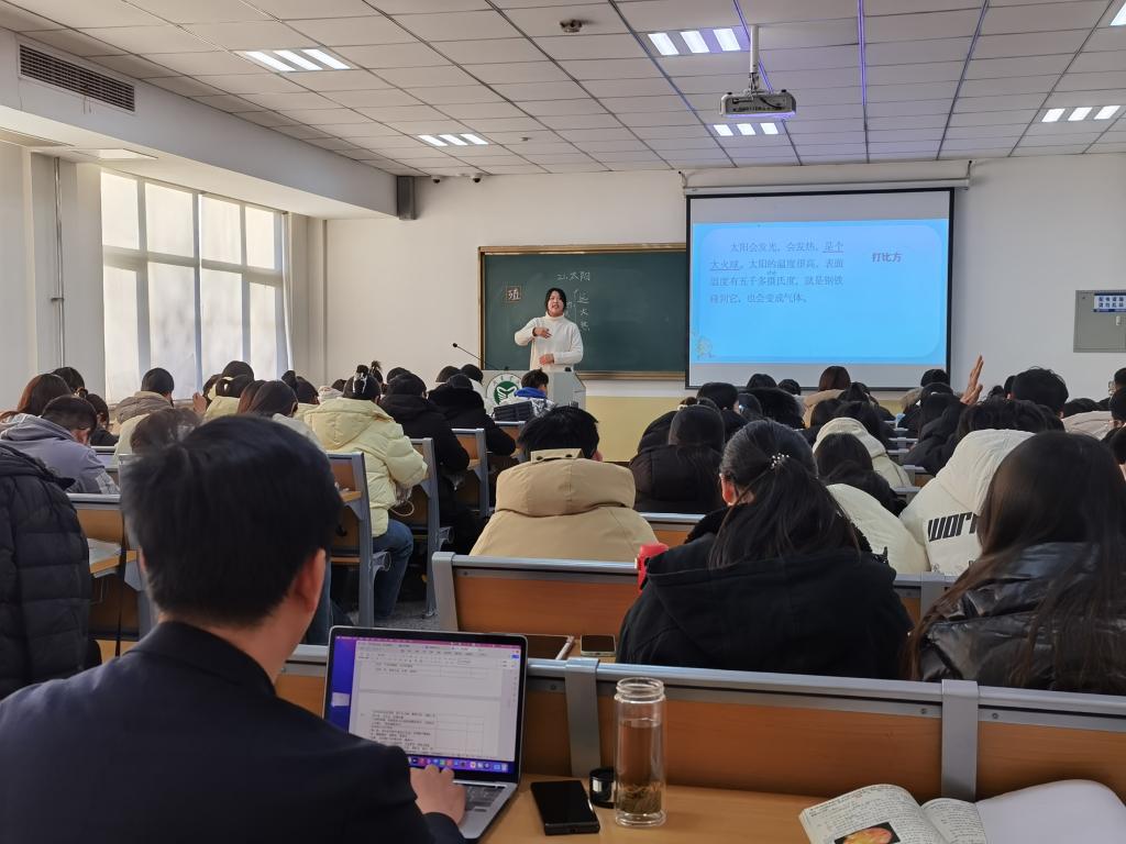 郭峰老师以“乘语文要素之舟,扬学习任务之帆--谈语文学习任务驱动下的阅读教学有效设计”为题做课堂教学专题报告。他希望同学们在今后的学习过程中认真学习语文新课程标准,研读教材,落实语文学习任务群,重视课后习题的作用,切实提高教育教学能力。随后,他从“读好三本书”“用好四个锦囊”“做好五个关注”等方面,向学生讲解了语文学习任务驱动下的阅读教学的有效设计,并以《将相和》为例分享了学习活动的设计过程并做教学示范。