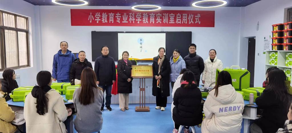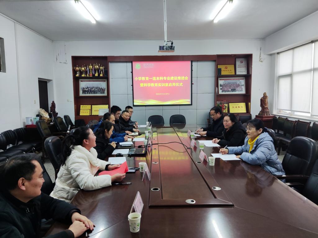 12月29日,教师教育学院召开小学教育一流本科专业建设推进会暨科学教育实训室启用仪式。会议邀请教务处副处长黄长虹、高等教育研究院院长李群、教学质量监控与评估处处长张邦伟莅临指导,教师教育学院副院长贾英侠、王帅、科学教育实训室建设项目负责人张祥军及小学教育专业的教师代表参加,会议由办公室主任储旭主持。