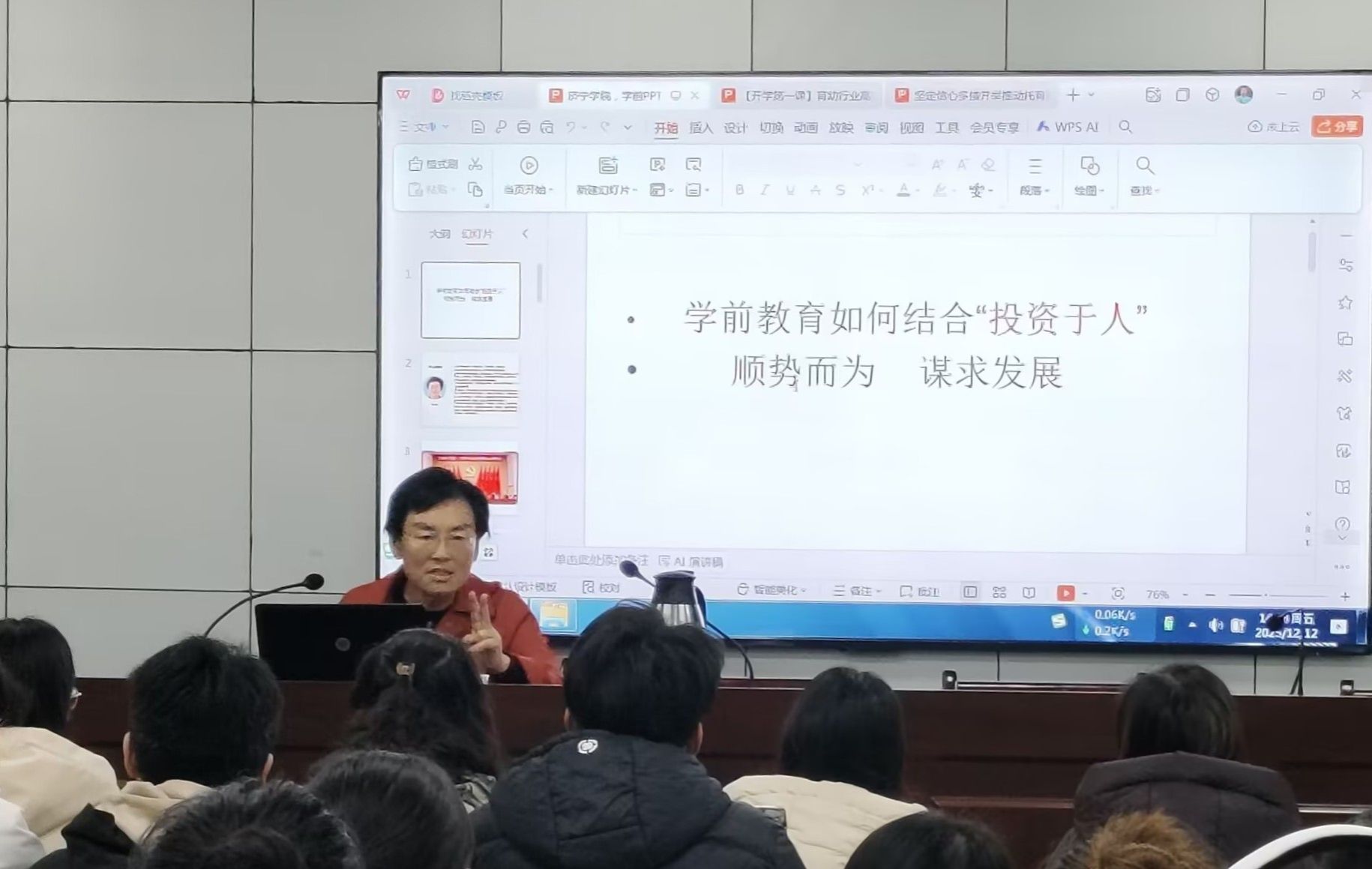 为主动适应托幼一体化发展新趋势,深化人才培养模式改革,12月12日下午,教师教育学院举办“托幼一体化人才培养”专题讲座与研讨活动。活动特邀济宁市人大一级巡视员、原济宁市托育指挥部常务副指挥长陈颖主任担任主讲,学前教育专业专任教师及2022级全体学生共同参加。