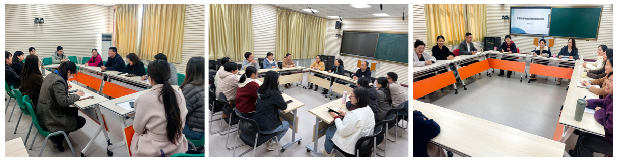 随后,心理学系、小学教育系和学前教育系的教师分为3个小组进行了分组研讨,学院领导班子成员分别参加了3个小组的研讨活动。各系教师围绕如何对接社会需求、深化校地合作、加强产教融合、提升服务地方能力等议题进行了深入探讨,论证了各专业在应用型转型中的合理定位与发展方向。
