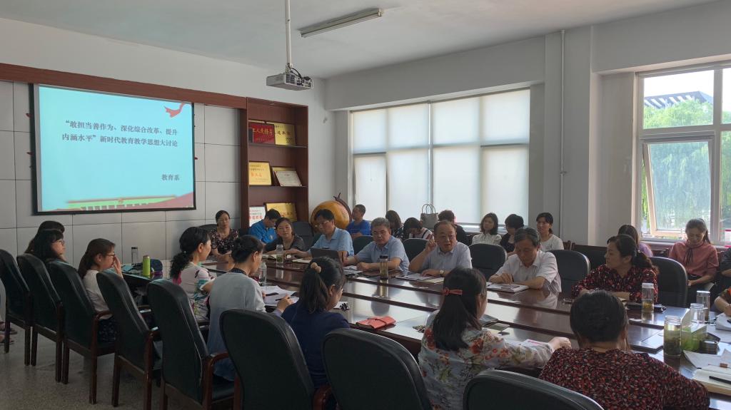 新时代教育教学思想大讨论研讨会的成功举行,进一步提高了教育系领导班子引领科学发展的能力和水平,有助于全体教师进一步提高认识,转变观念,提振精神,凝聚共识。