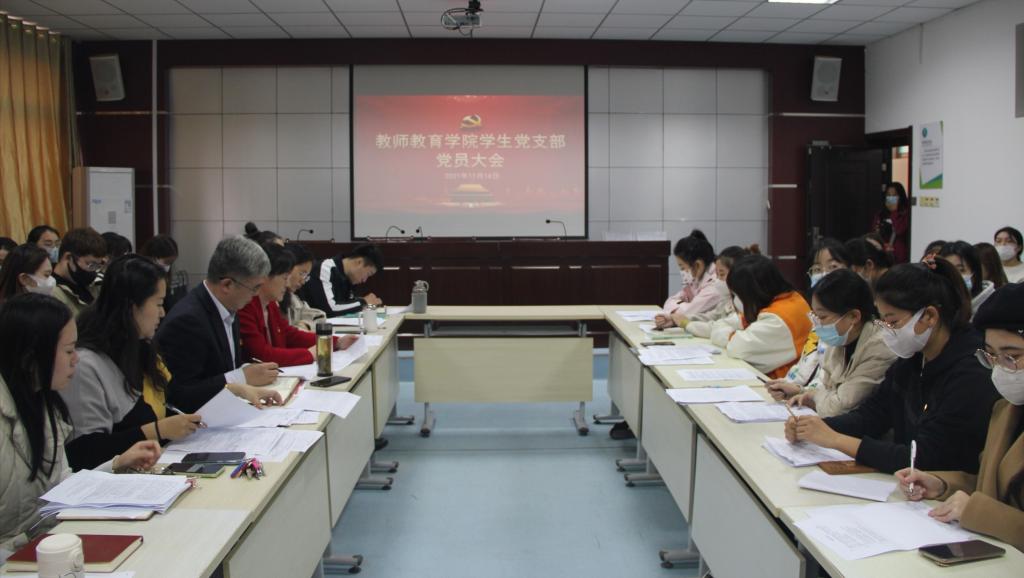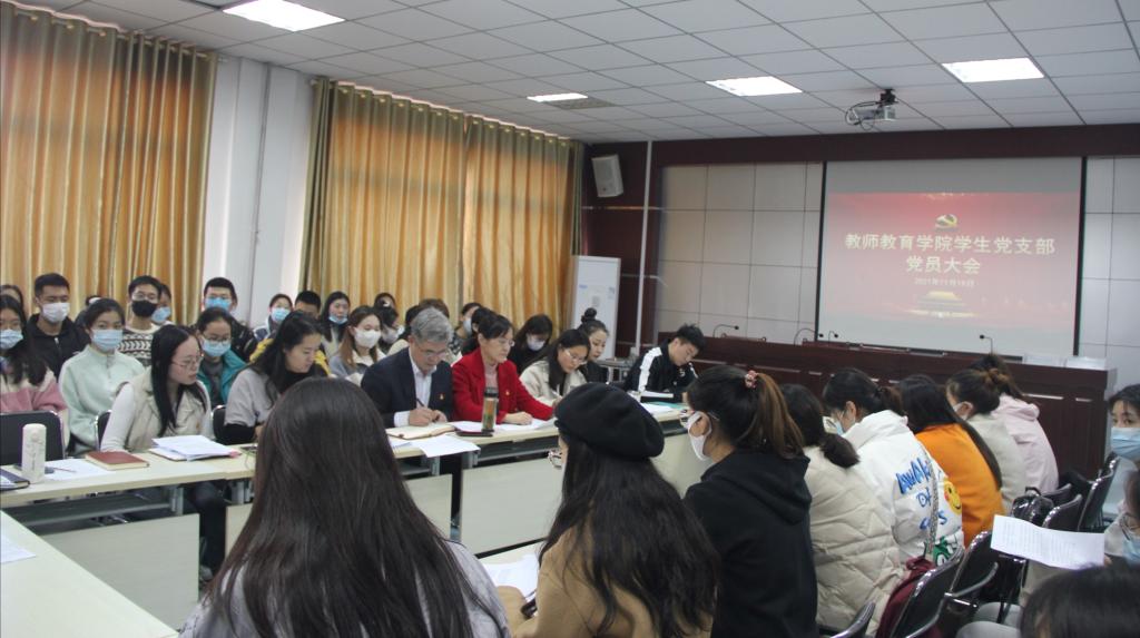 11月18日下午,教师教育学院学生党支部在2号楼C407召开党员大会,讨论刘成林等4名同志的转正及姚梦茹等63名同志为预备党员的问题。院党委书记乔东华、院长李群、组织员颜景虎列席会议,学生党支部书记杜鹃主持会议。
