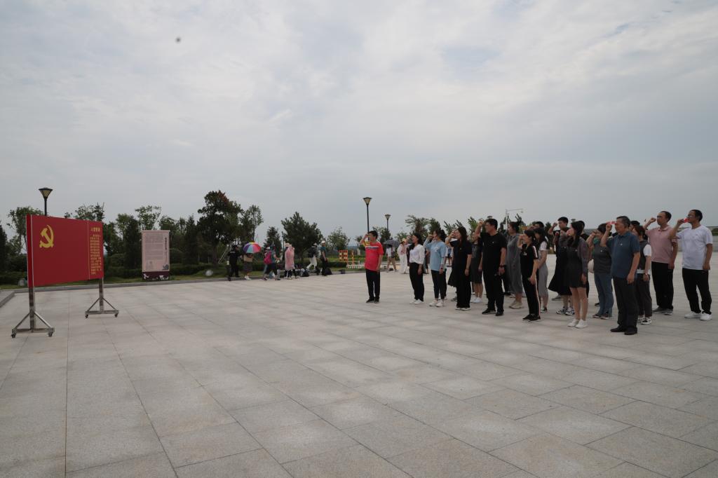 在革命烈士纪念碑前,全体党员面向党旗,举起右手,庄严宣誓,重温入党时对党和人民作出的庄严承诺,共同接受了一次心灵的净化和洗礼。