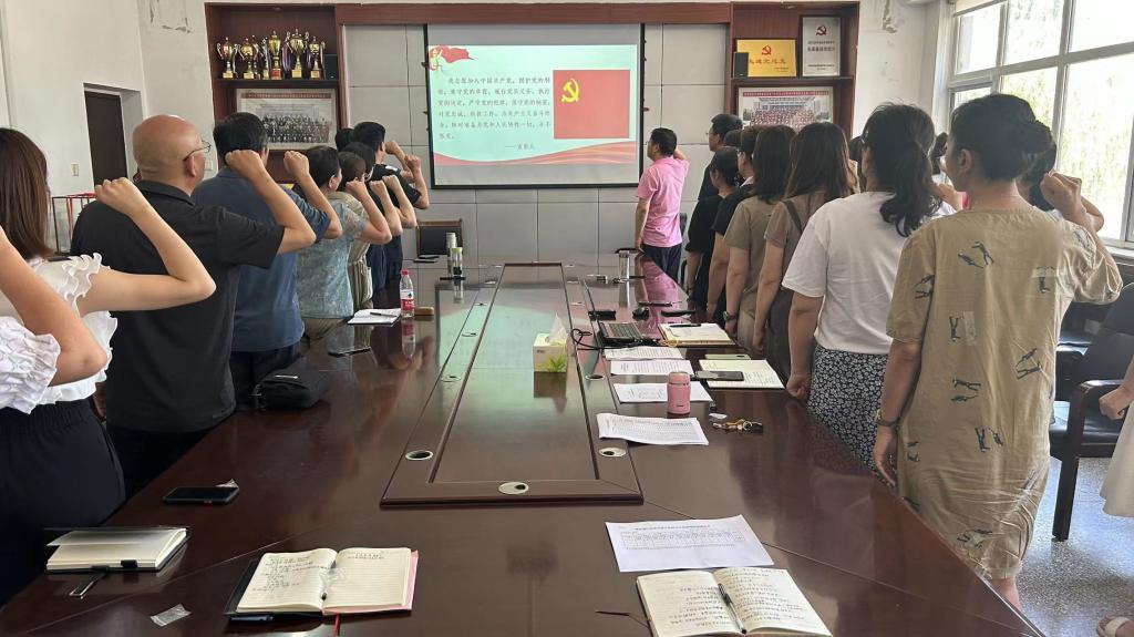 专题党课后,面对鲜红的党旗,全体党员高举右拳庄严宣誓,用铿锵恢宏、掷地有声的铮铮誓言,表达对党的无限忠诚和敬意,以坚定有力的宣誓表达永远跟党走、奋进新征程的坚定信念和决心。