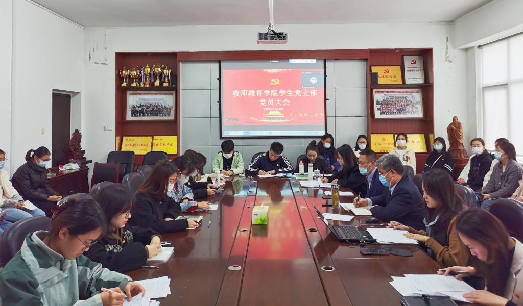 11月10日下午,教师教育学院学生党支部在学院会议室召开党员大会,讨论皮芳蔚同志的转正及谷蕊等39名同志为预备党员的问题。院党委书记乔东华、党委委员曹光海参加会议,会议由学生党支部书记杜鹃主持。