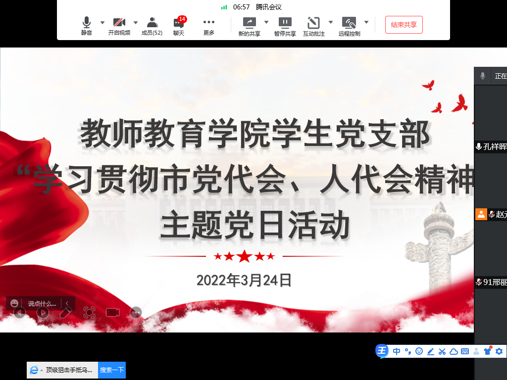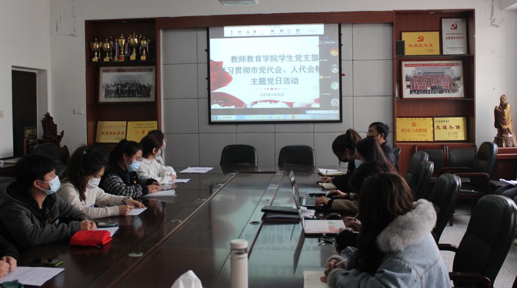 3月24日下午,教师教育学院学生党支部通过线上线下相结合的形式,开展集体学习活动,支部书记杜鹃主持。