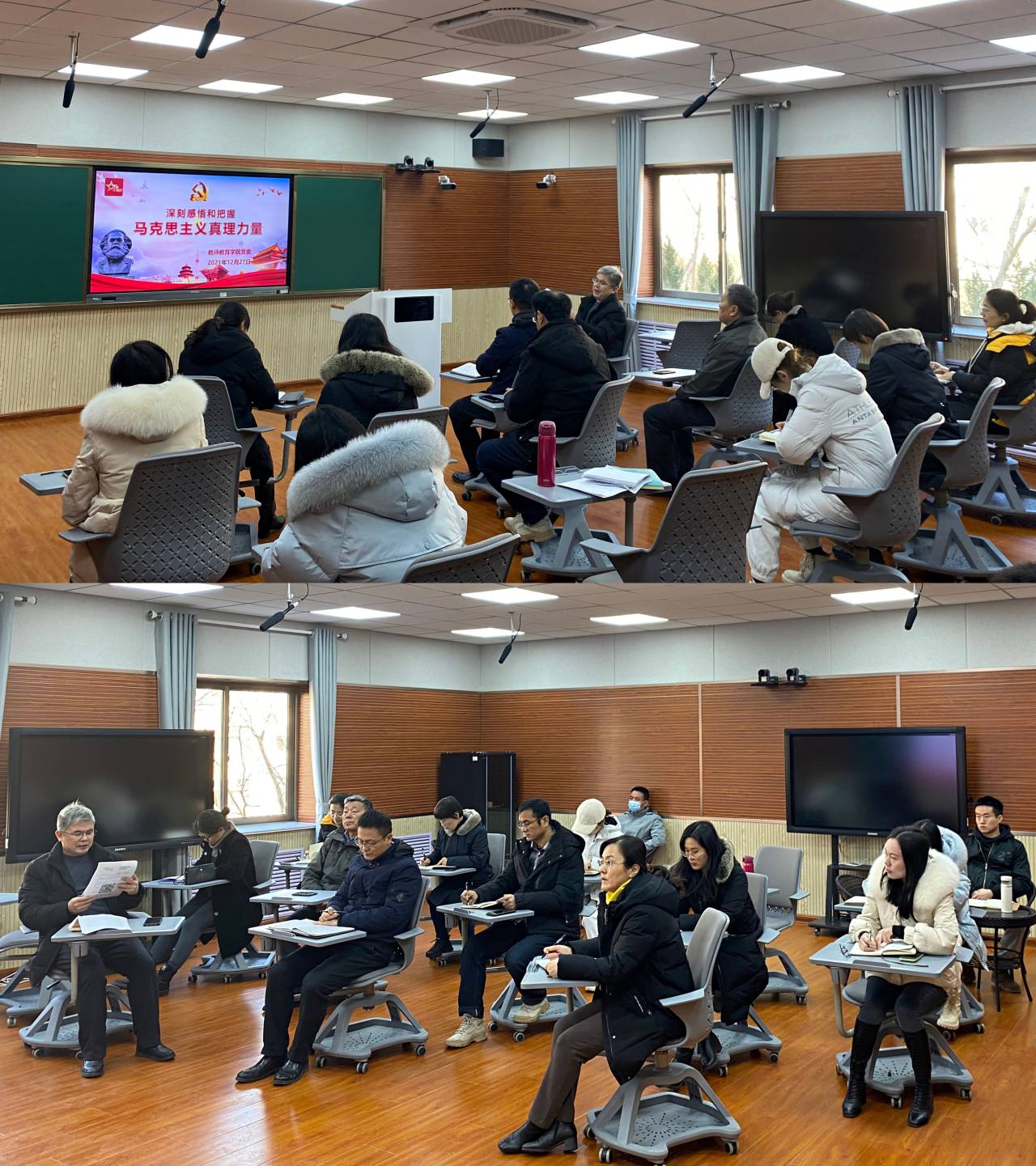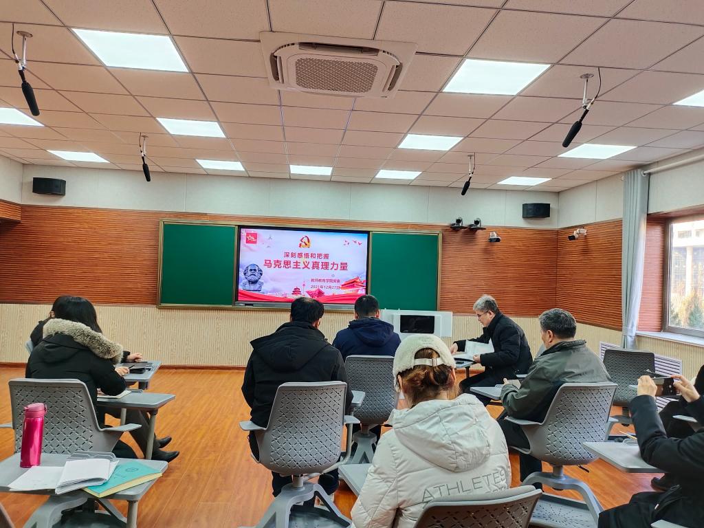 为深入学习贯彻习近平总书记在庆祝中国共产党成立100周年大会上的重要讲话和党的十九届六中全会精神,进一步推动党史学习教育向纵深发展。2021年12月27日,教师教育学院举办“深刻感悟和把握马克思主义真理力量”红色主题论坛活动。学院领导、辅导员及教工党员代表参加了此次论坛活动。