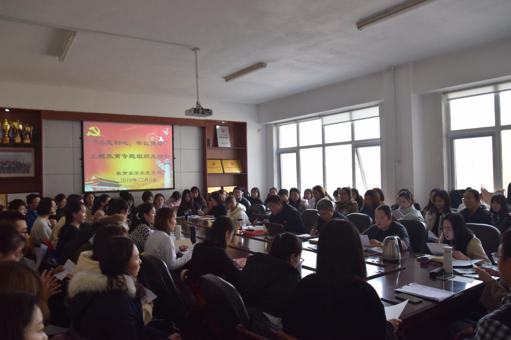 根据校党委、系党总支统一部署,12月9日下午,教育系学生党支部召开“不忘初心、牢记使命”主题教育专题组织生活会。教育系党总支书记乔东华到会指导并做点评,学生党支部书记杜鹃主持。