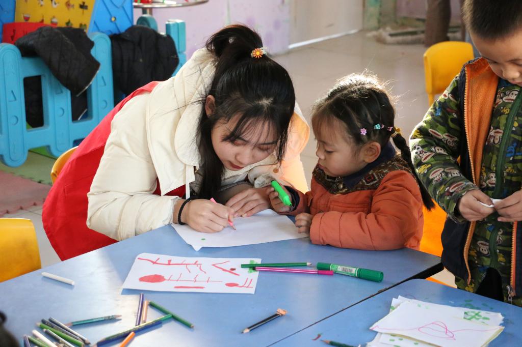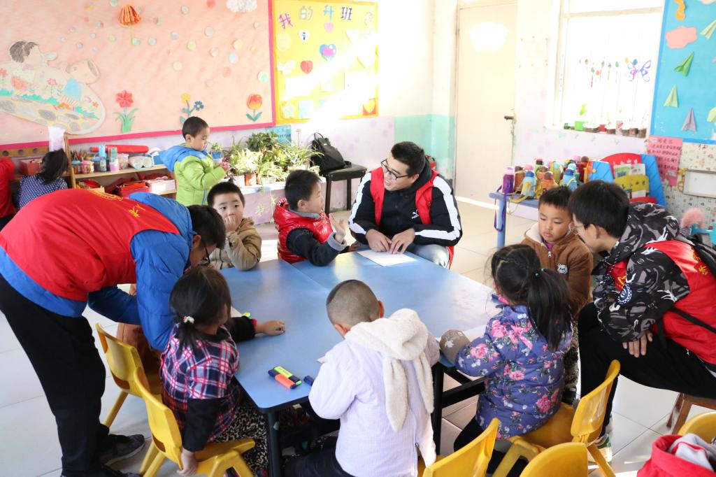 活动中,同学们通过简笔画、彩笔画、手工制作、硬笔书法、剪纸手工等活动与小朋友们进行教学互动。他们以极强的亲和力迅速融入到孩子们中间,与他们一起做游戏,手把手的指导孩子们进行手工制作,激发他们的想象力和创造力,热情、耐心的为孩子们答疑解惑,启发他们的思维。这种寓教于乐的方式深受小朋友的喜爱,一张张开心的笑脸也让同学们由衷的感到快乐和幸福。