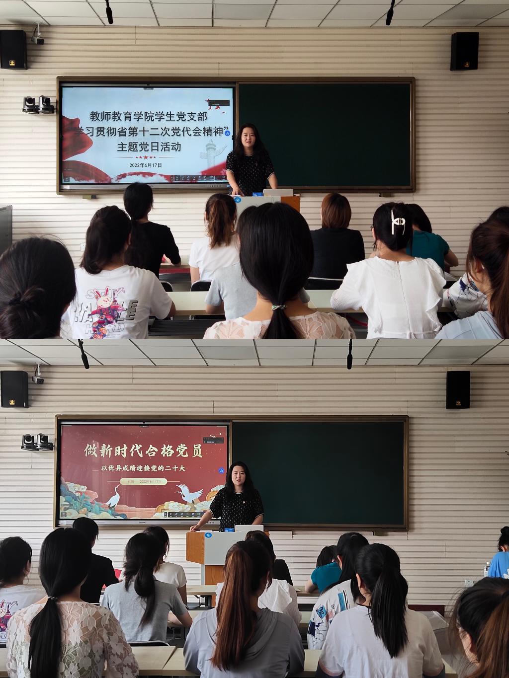 为庆祝中国共产党成立101周年,引导党员深入学习宣传贯彻省第十二次党代会精神,推动省党代会精神走深走实,6月17日上午,教师教育学院学生党支部通过线上线下相结合的形式,开展了“学习贯彻省第十二次党代会精神”主题党日活动,支部书记杜鹃主持。