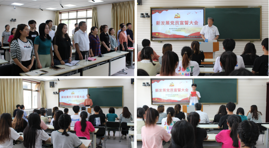 为了加强对新发展党员的党性教育,增强党员的责任感、使命感和归属感,6月9日下午,教师教育学院学生党支部在2号楼C301举办新党员入党宣誓仪式。该院院长李群、正处级组织员颜景虎参加。