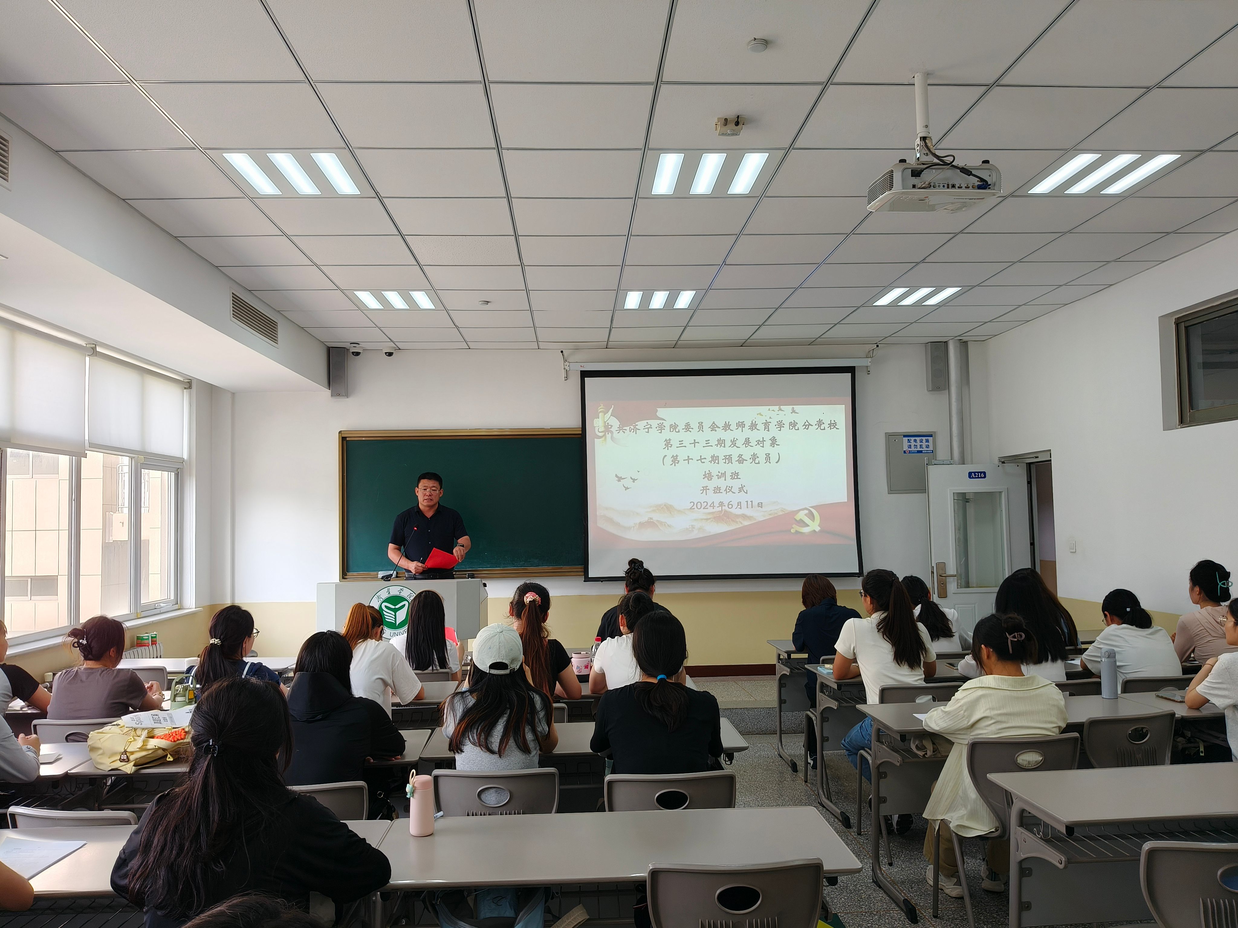 6月12日下午,教师教育学院第三十三期发展对象(第十七期预备党员)培训开班仪式暨首场专题报告会在2号楼A216顺利开班。学院党委书记刘勇及全体辅导员参加开班仪式,学校机关党委书记樊海涛进行专题报告。