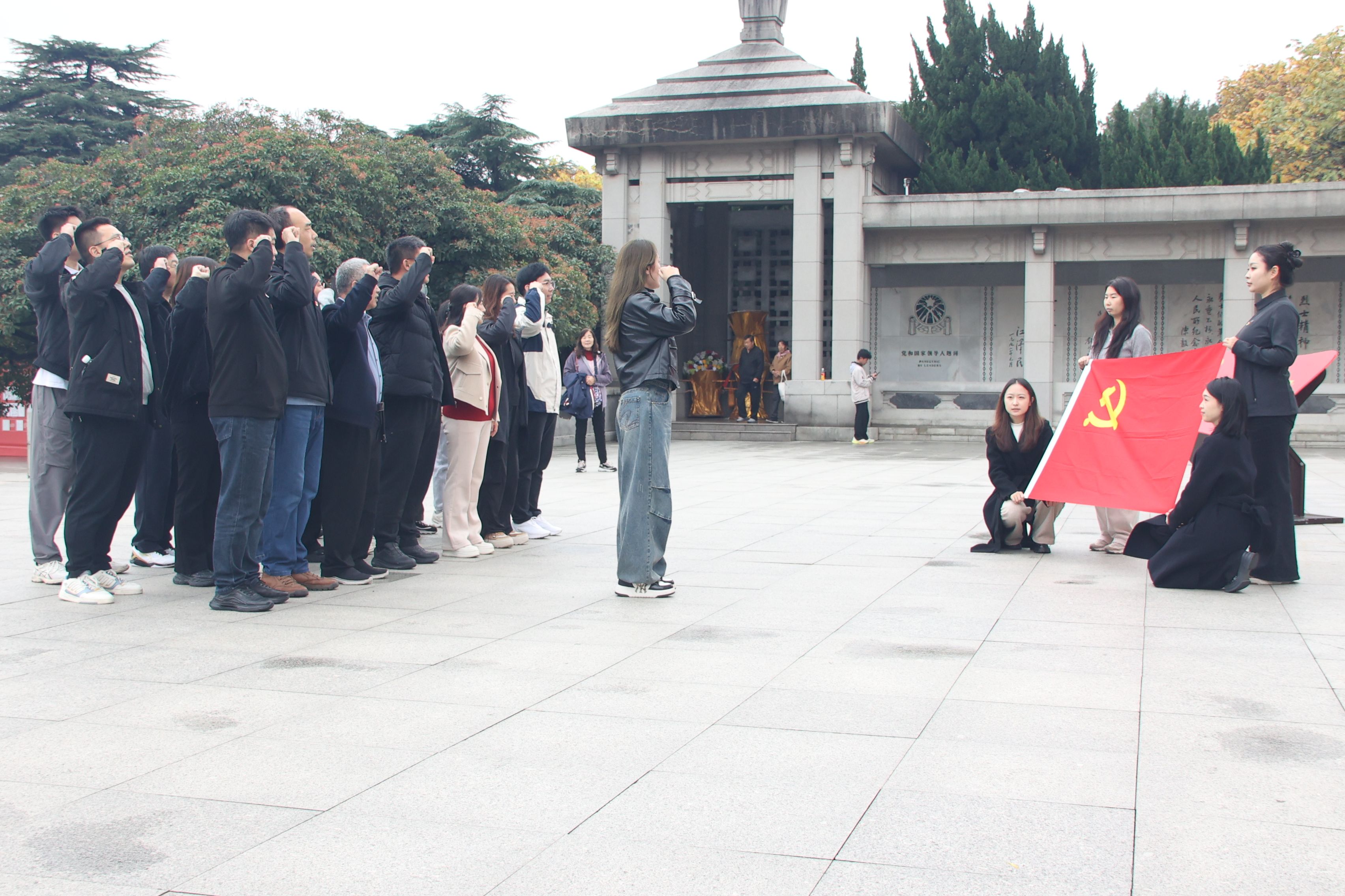 在淮海战役纪念馆,党员教师们沿着历史脉络,通过丰富的文物、影像和文献,全面回顾了淮海战役的壮阔历程。人民群众“最后一碗米送去做军粮,最后一尺布送去做军装”的奉献精神深深触动了每一位教师。在巍峨的纪念塔前,全体党员面向党旗庄严宣誓,铿锵的誓言传递出坚守理想信念、勇担教育重任的坚定决心。
