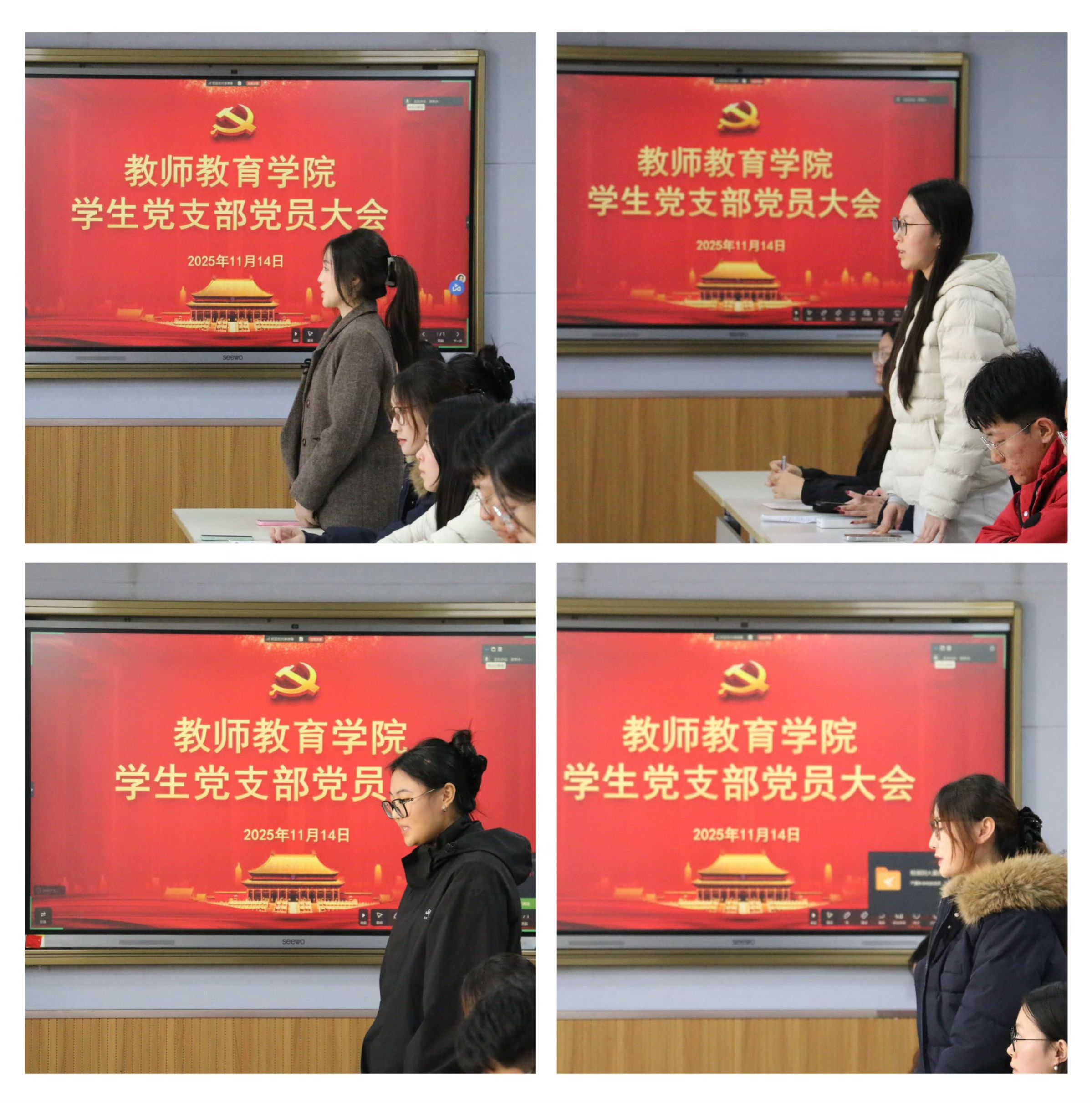 为进一步夯实党员队伍建设,凝聚组织力量,提升党支部战斗力,11月14日下午,教师教育学院学生支部在2号楼C409召开预备党员接收大会,学院党委书记刘勇、副书记杜鹃列席。会议由各党支部书记主持。