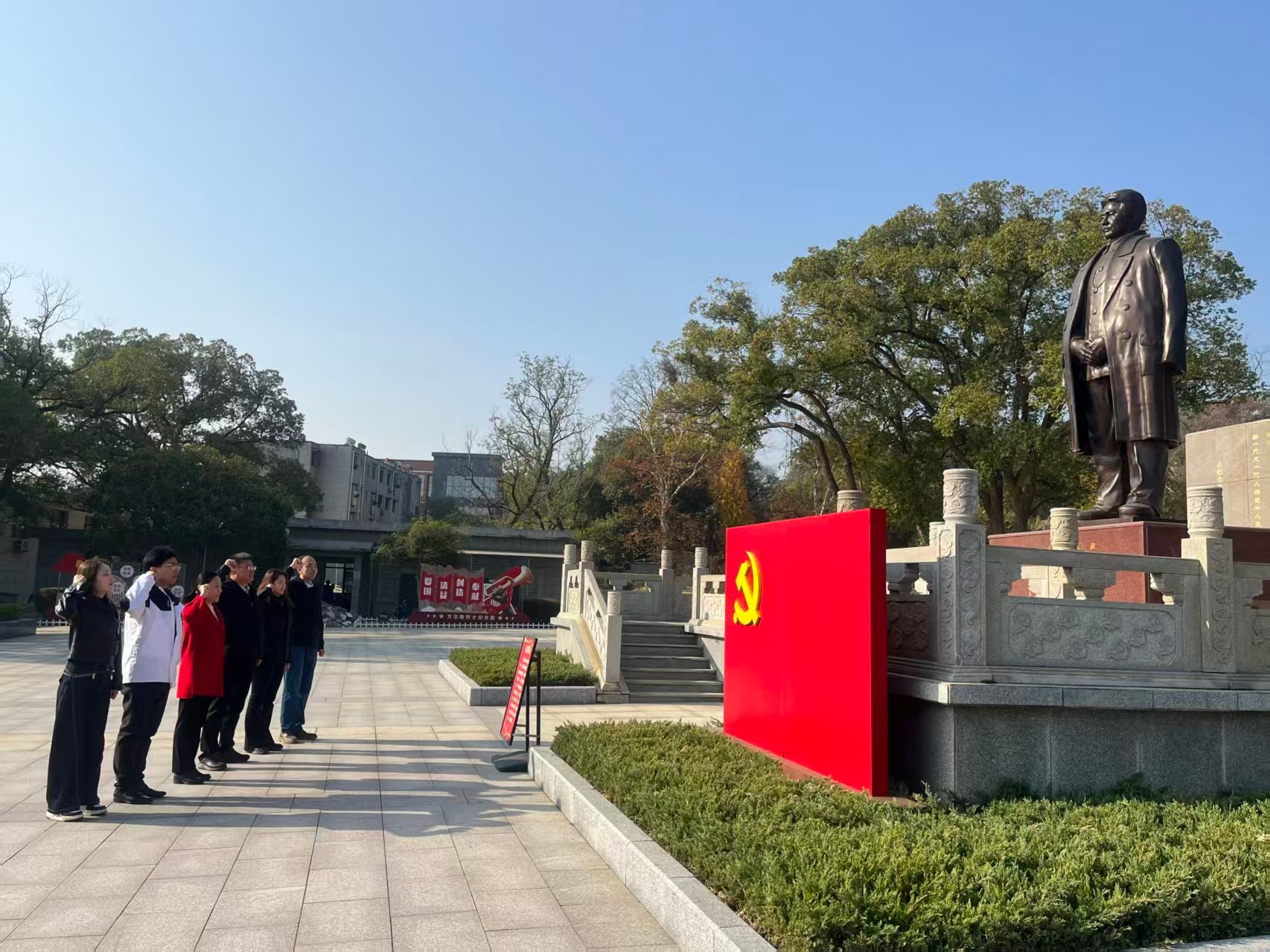 活动最后一站是方志敏烈士纪念园。通过翔实的图片、文献与实物展示,同志们深入了解了方志敏烈士为民族解放与人民幸福不懈奋斗、直至牺牲的光辉一生。他在狱中所著《可爱的中国》《清贫》等篇章所折射出的坚定信仰、浩然正气与清廉品格,深深震撼了每一位党员。在方志敏烈士塑像前,面对鲜艳的中国共产党党旗,全体党员庄严重温入党誓词。铿锵有力的誓言回荡园内,表达了大家不忘初心、牢记使命,继承先烈遗志、为党的事业奋斗终身的坚定决心。