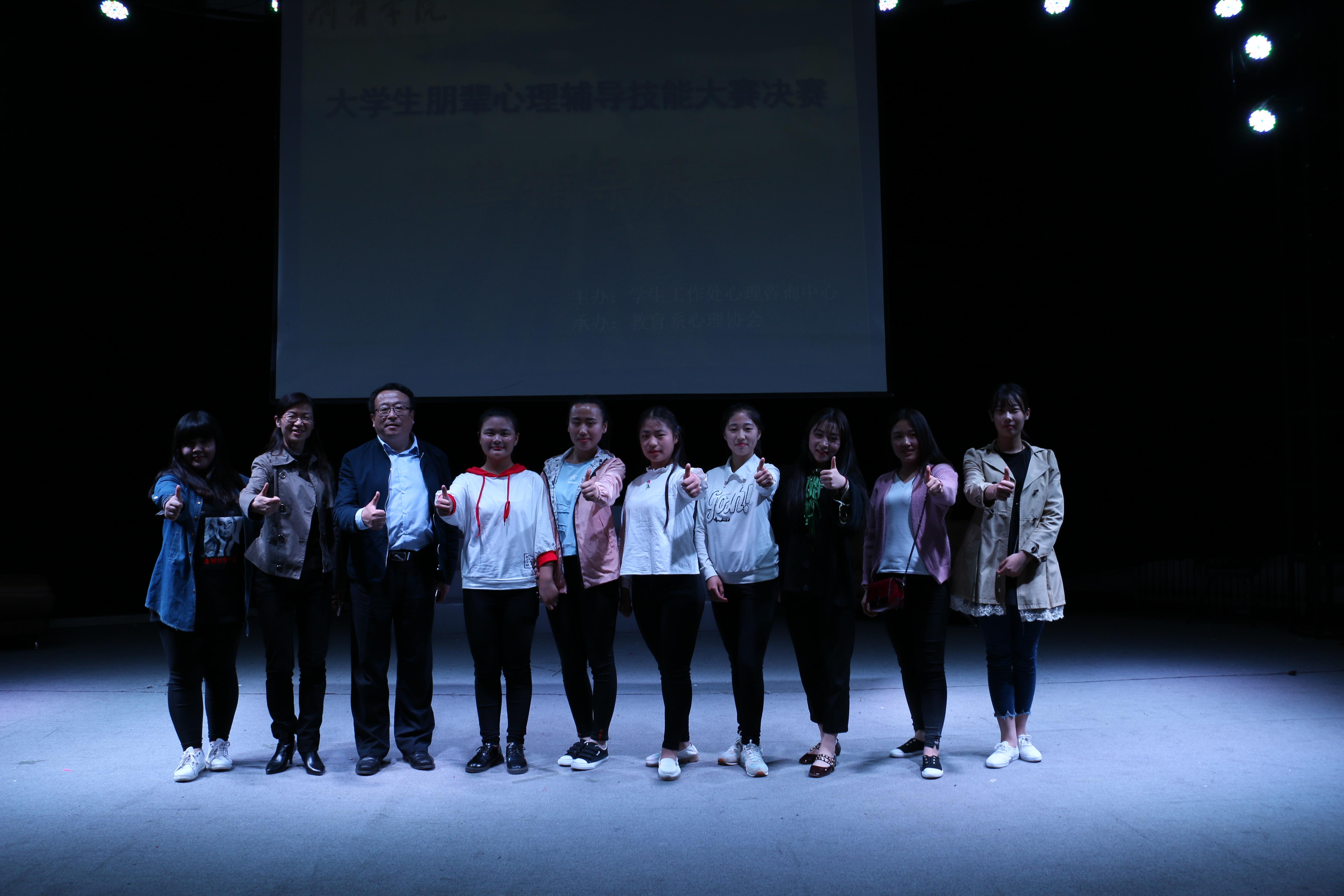 2017年4月20日,由学生工作处大学生心理咨询中心主办、教育系心理协会承办的“突破自我,步步竞心”首届大学生朋辈心理辅导技能大赛圆满完成。社科部孔凡华老师,化学与化工系马京老师,学生工作处韩西莲老师以及心理委员代表于天淇、李卫婷、盖智超担任本次比赛的评委。心理委员代表秦小瑜、王腾飞担任计分监督员。