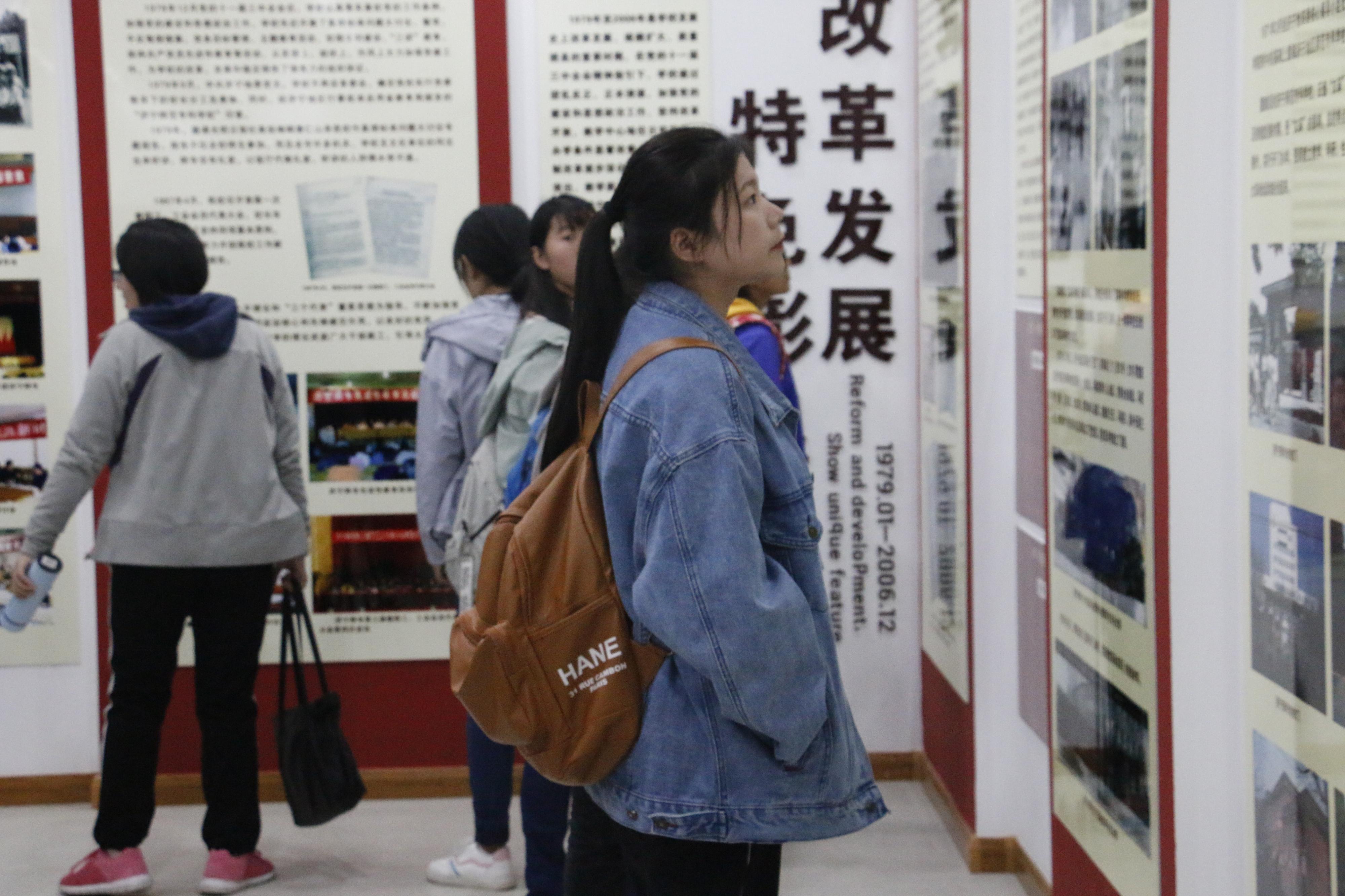 同学们井然有序地进入校史馆进行参观。根据历史发展过程,校史馆展厅划分为九个展区,每个展区都配备一名讲解员。校史馆的工作人员早就准备就绪,热情接待前来参观的同学,并详细地向同学们介绍了济宁学院的历史沿革。同学们在校史馆讲解员的讲解下,了解了每张照片背后蕴藏着的故事。校史馆内的陈列鲜明而富有代表性,全方位地向教育系同学展现了建校以来的辉煌变迁,同学们通过观看图文并茂的展板、珍贵的馆藏实物,直观地了解了学校的历史变革以及取得的成就。