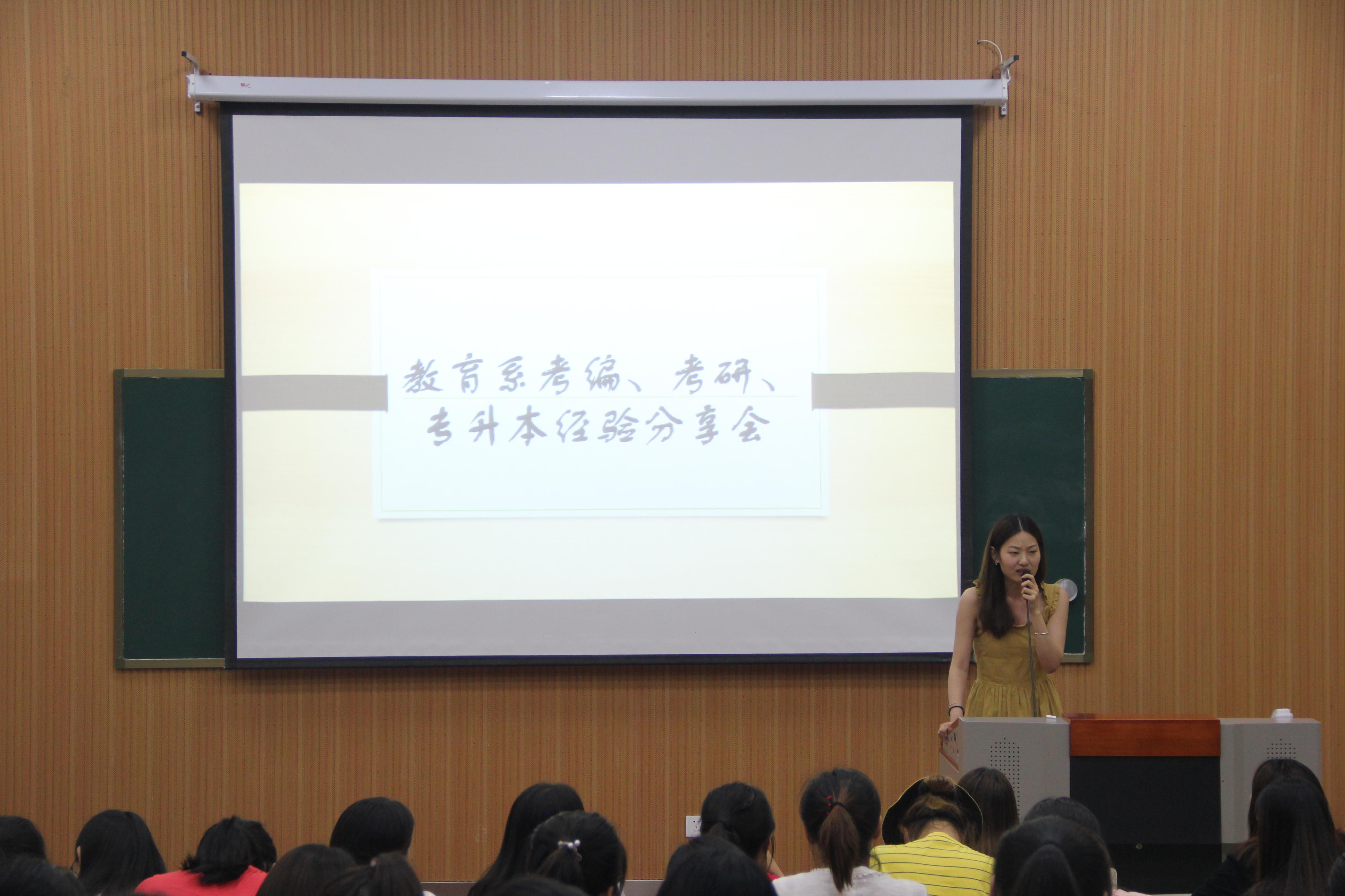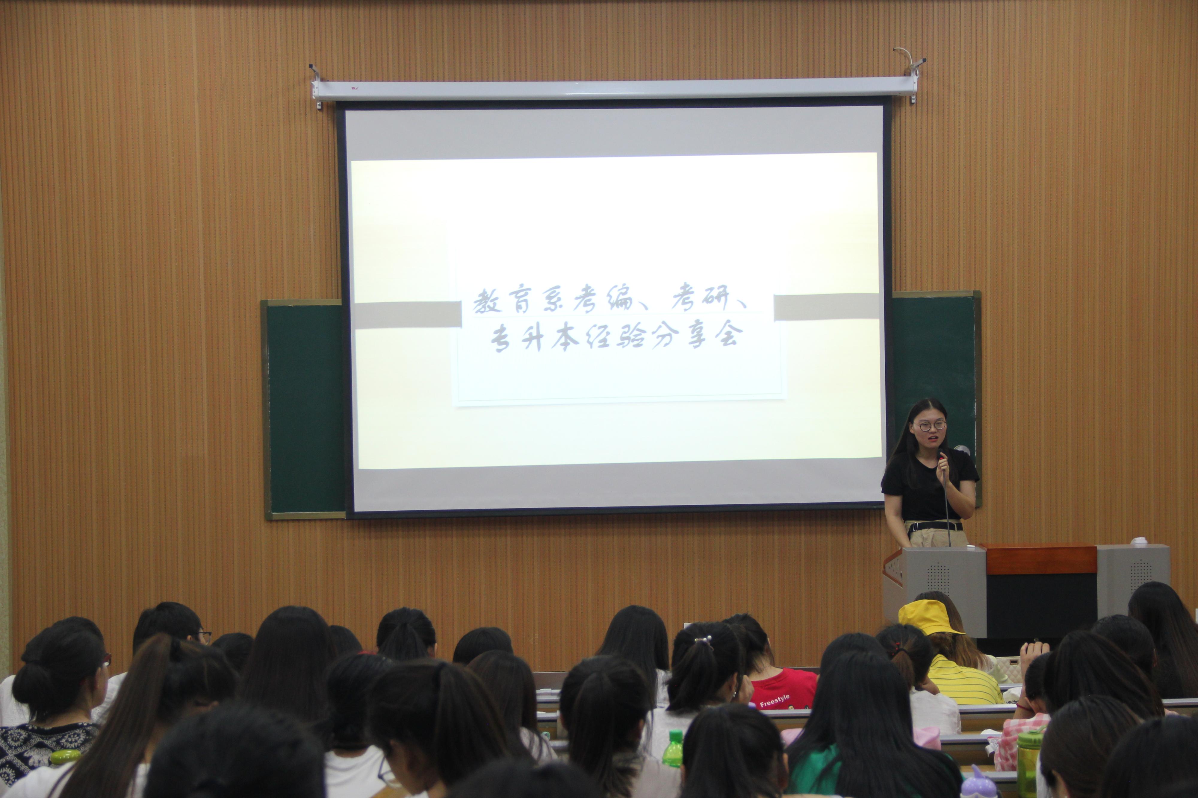 2018年6月20日19时,由教育系团总支主办,学习部承办的“考编、考研、专升本交流会”在四号楼B101报告厅举行,教育系辅导员徐艳艳出席,教育系部分同学参加。