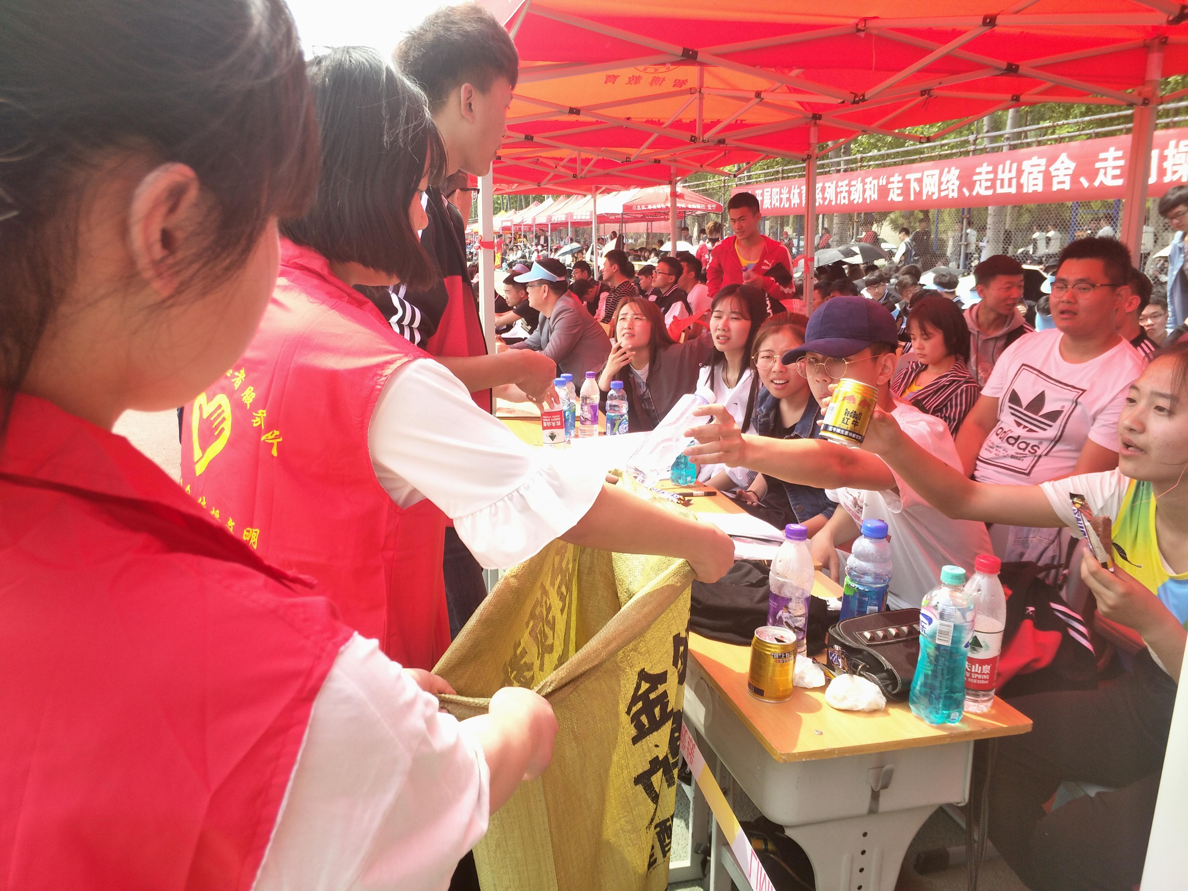 活动伊始,志愿者在东操场北门摆放帐篷,并进行横幅宣传,提醒广大师生自觉将空瓶放入帐篷旁所放置的垃圾桶内,不要乱扔。待运动会半场结束后,再由专人将操场的空瓶进行集中回收。活动结束后,一部分空瓶子用于手工制作,一部分将卖出,所得资金用于后期敬老院活动。