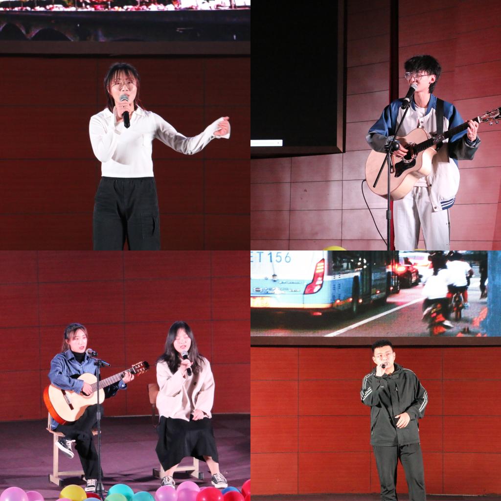 经过近一个月时间的层层选拔,成功晋级的12名选手站上了决赛的舞台。“快乐之家舞团”和“啦啦队”元气登场,聚光灯照耀在身上,台下同学们热情高涨,为台上的每一位选手加油、助威。一首《父亲写的散文诗》开始便让人引起共鸣,婉转悠扬的《慢慢》,荡气回肠的《老男孩》,温暖贴心的《日不落》,柔情似水的《贝加尔湖畔》……悦耳动人的歌曲如华丽的水彩画般缓缓铺呈在学生们的面前,让观众如身临其境般步入歌曲的唯美场景中。歌手们倾情演绎,奉献他们的精彩演唱,赢得观众们阵阵掌声。