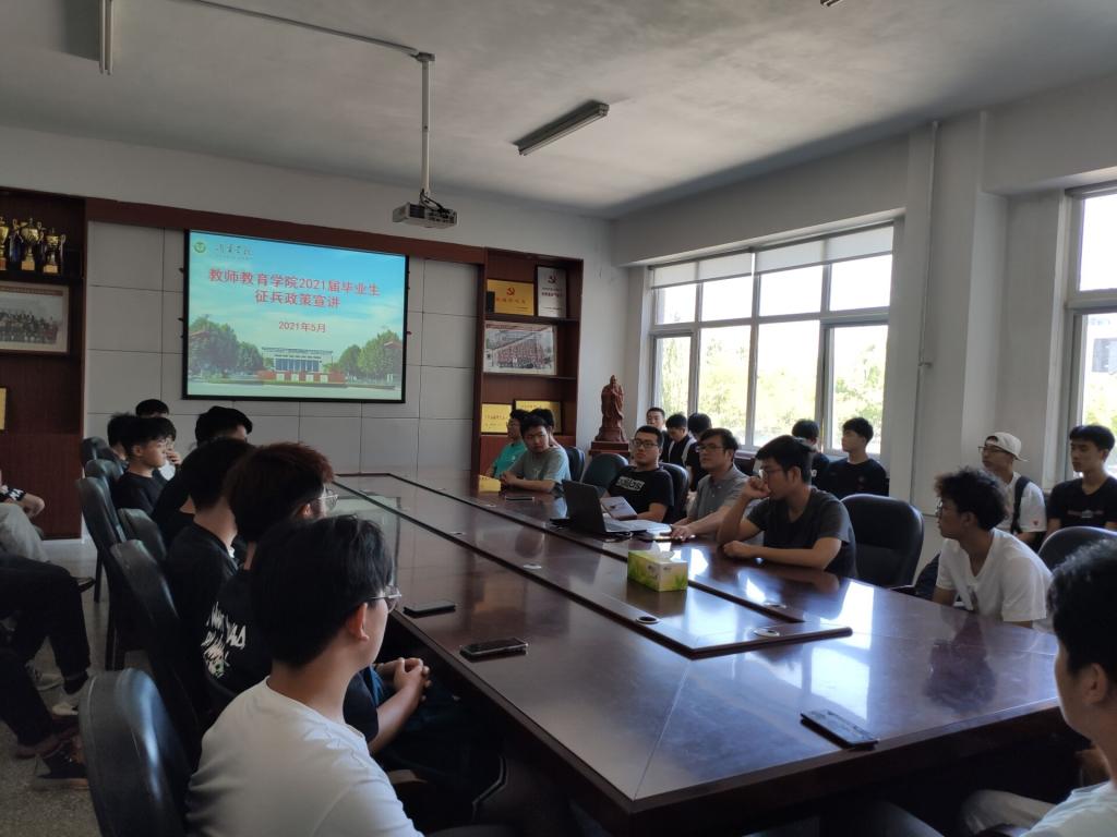 为激发同学们保家卫国的热情,鼓励优秀学子参军入伍,2021年5月30日上午,教师教育学院在会议室A211组织开展“教育学子携笔从戎,参军报国建功立业”征兵宣讲活动。教师教育学院各年级学生参加此次活动,本次活动由赵国丽主讲。