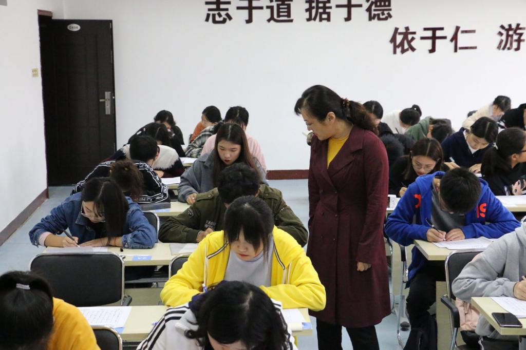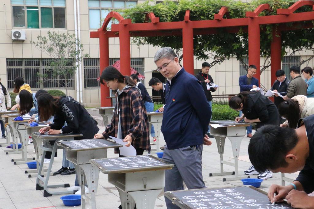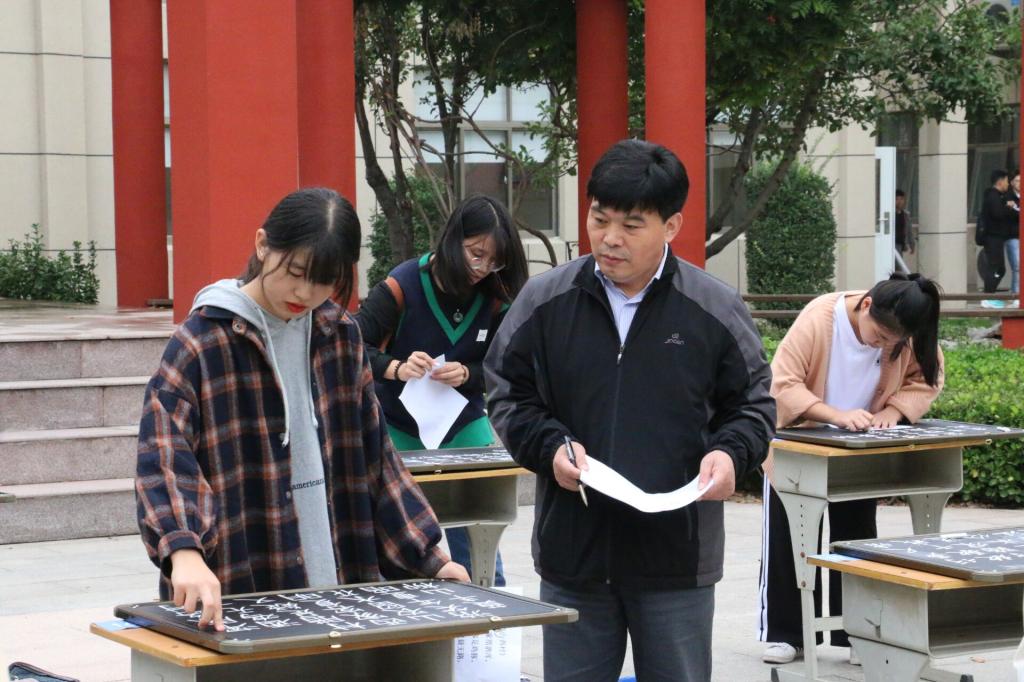 10月10日,由校团委、教师教育学院主办,教育系团总支承办的“写中国字,展爱国情”硬笔书法大赛成功举办。来自各系的160名书法爱好者现场同台竞艺,书写中华经典诗词,弘扬爱国情怀。生物系党总书记李洪伟,中文系副主任葛艳丽,教育系教师程九标担任本次比赛的评委。